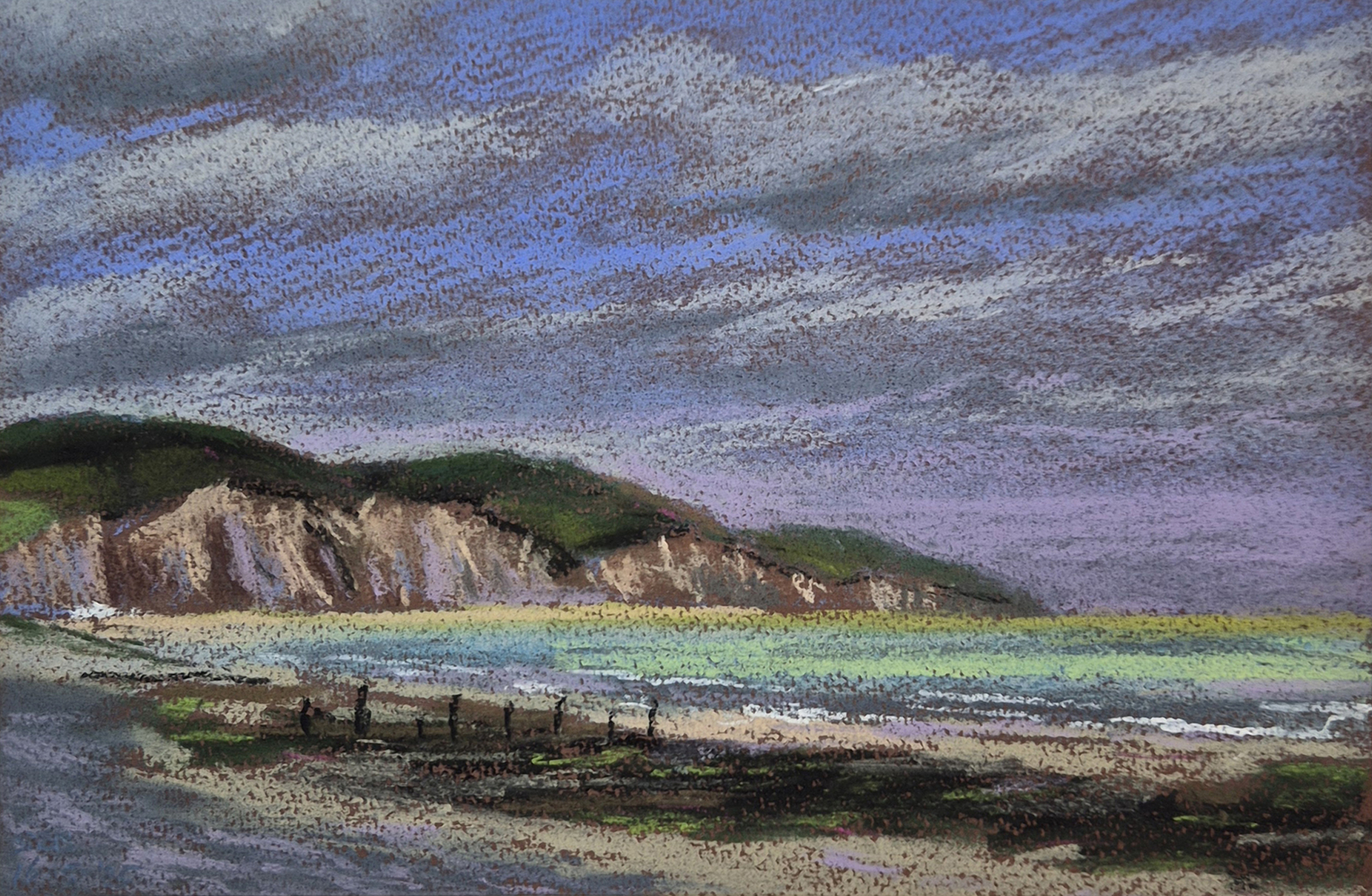Schilderweek in Normandië. En plein air, softpastel op papier, 17,7 x 27,1 cm. Met passe partout, waarmee de totale afmeting 30 x 40 cm is. In de buurt van Quiberville. 16 mei 2025. In een wissellijst met aluminium rand.