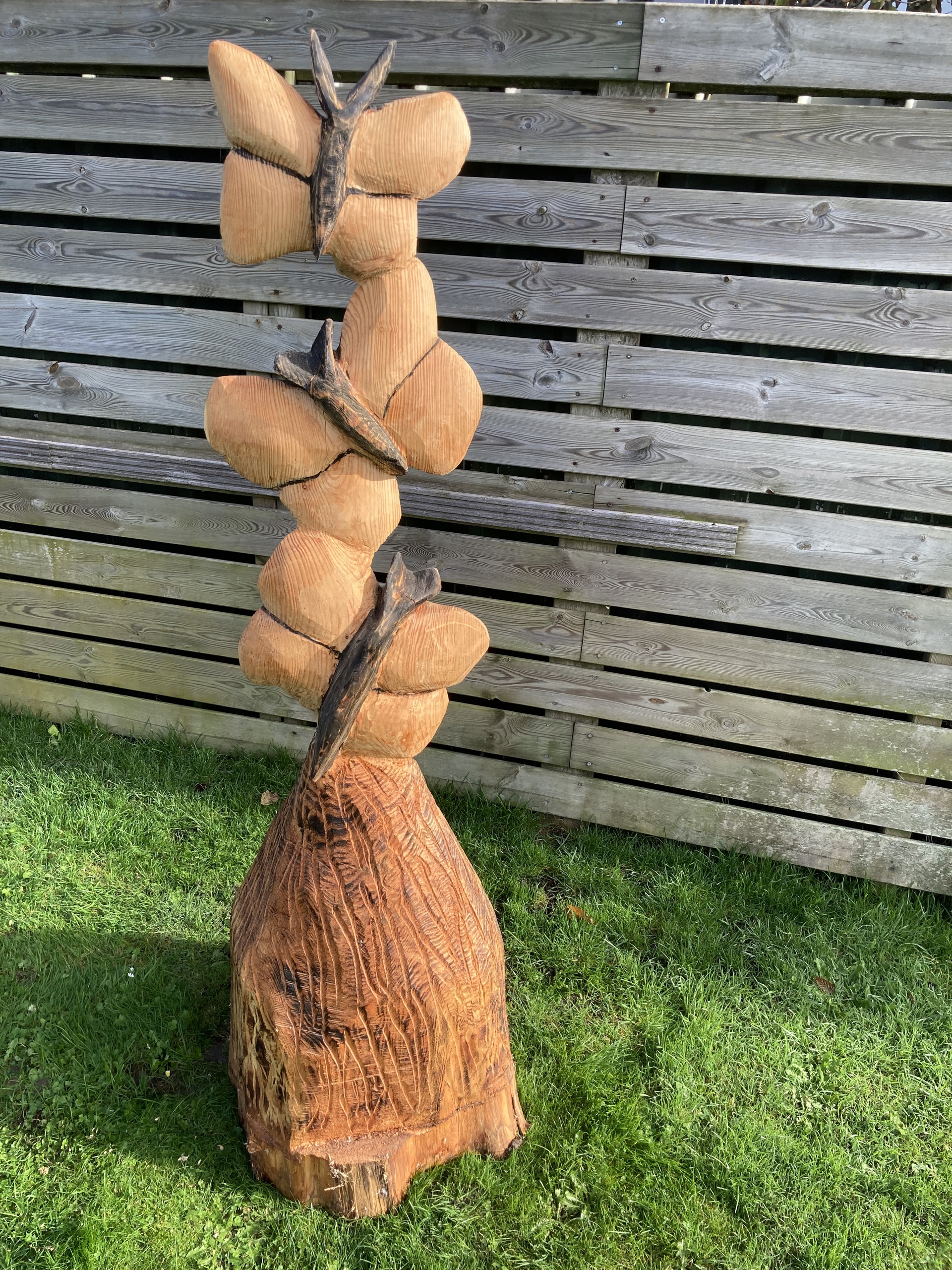 Vlinders Houtenbeeld Vlinder Hout Boomstam Houtensculptuur Kettingzaagkunst Woodcarving Sculptuur
