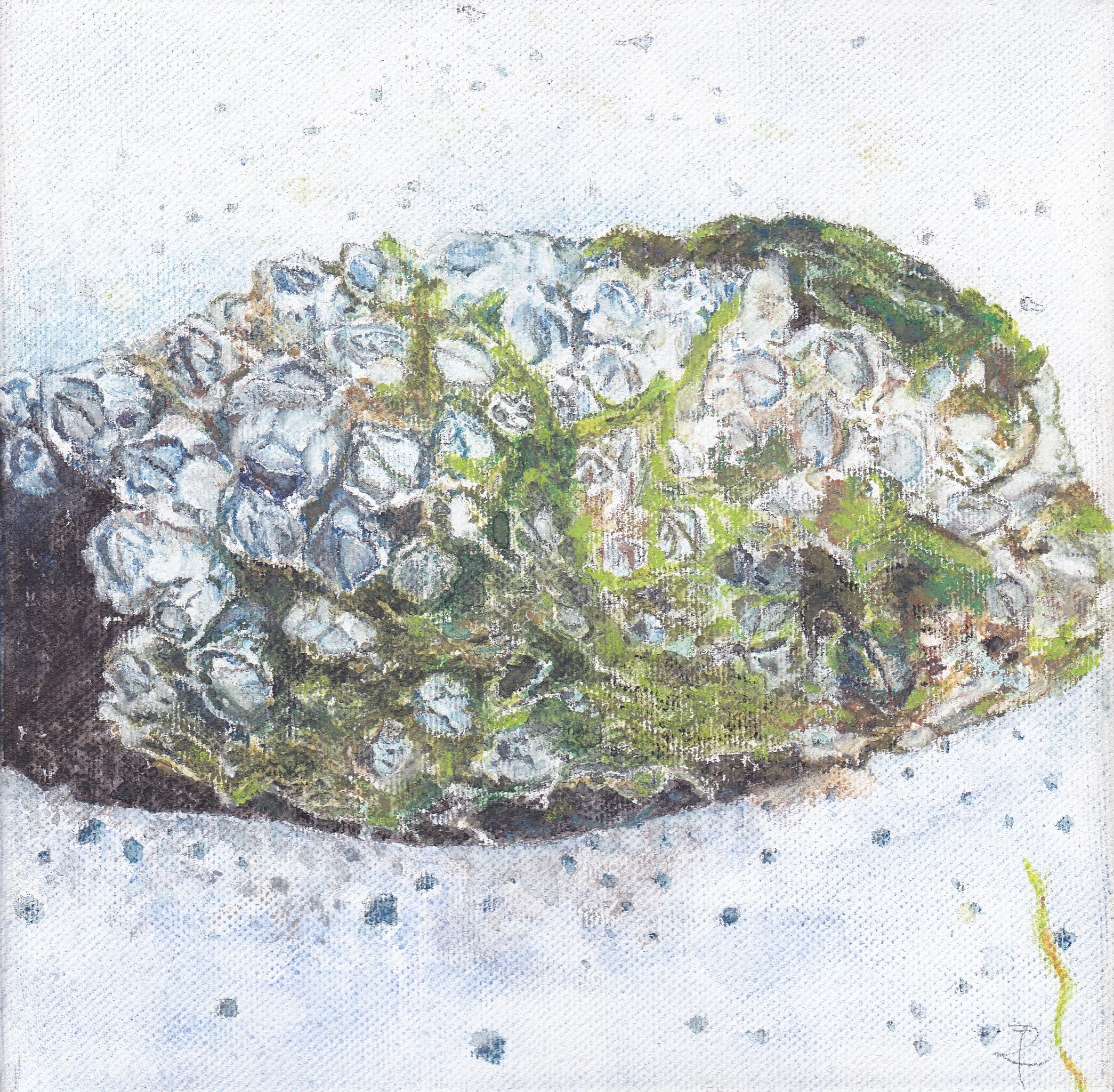 Wit Zee Strand Grijs Oranje Zwart Blauw Groen Bruin Canvas Plant Aquarelpotlood Mos Mossel Zeepokken