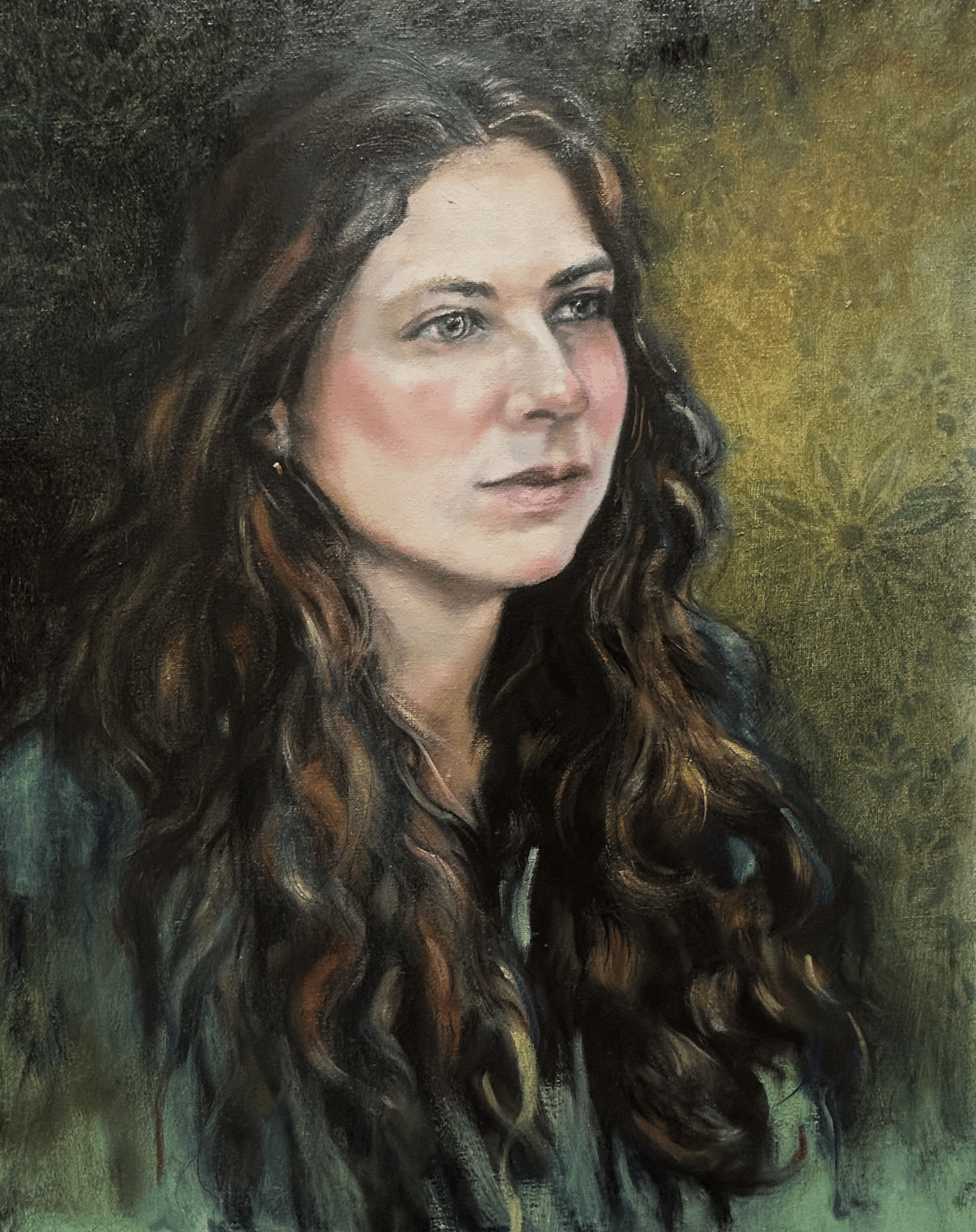 Model claire. Gestart in acryl en thuis verder uitgewerkt in olieverf.