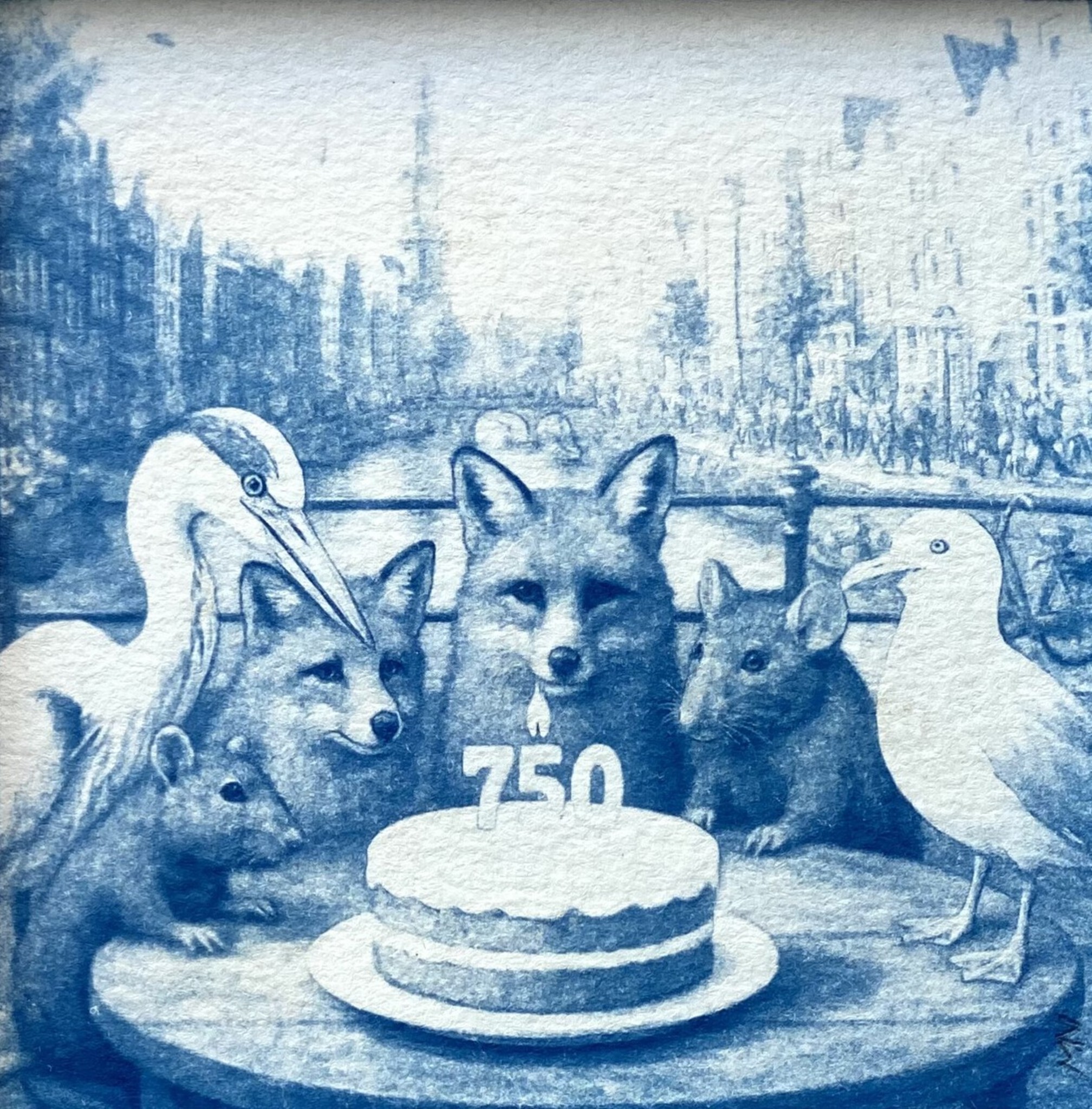 Gelimiteerde serie fotogrammen/ Cyanotype op 300 grams aquarelpapier. In deze serie is een eeuwenoude techniek uit de begintijd van de fotografie gecombineerd met de nieuwste AI technologie. De beelden zijn een speels eerbetoon aan het leven in de stad. Inclusief houten baklijst met ophangsysteem. Het werk is te koop via 10x10Artist.