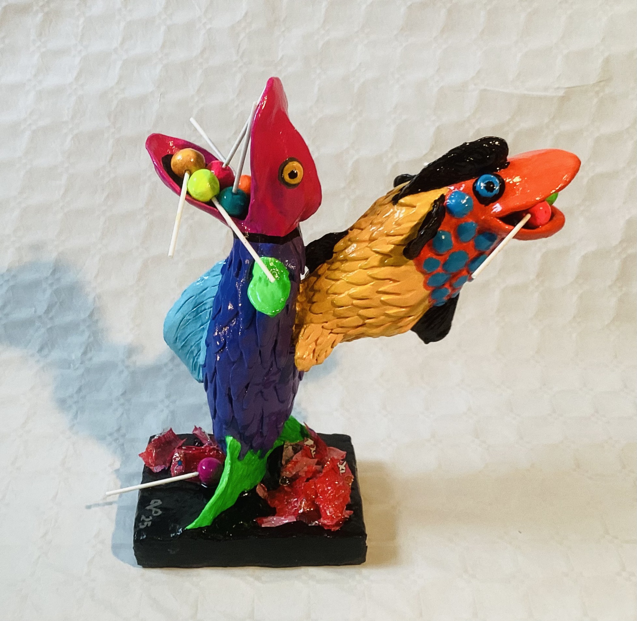 Pim van Pelt maakt vrolijke, kleurrijke en betaalbare kunst. Mensen een glimlach ontlokken is het doel. Het materiaal: keramiplast, acryl en afgewerkt met meerdere lagen epoxie.