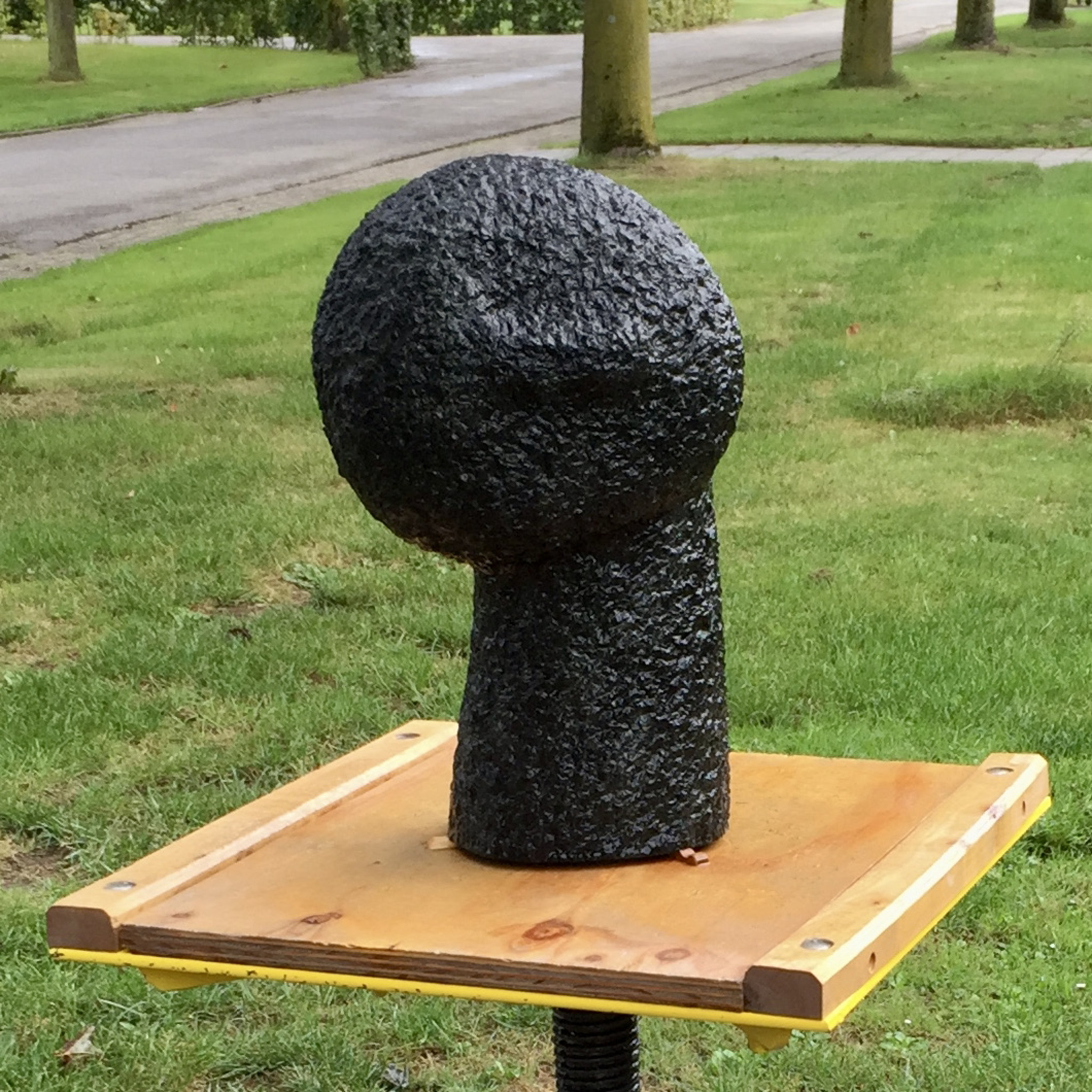 De inspiratie vond ik in de Kröller Müller Beeldentuin. Een dwarse kop doet vervreemdend aan. Gehakt met een puntbeitel.