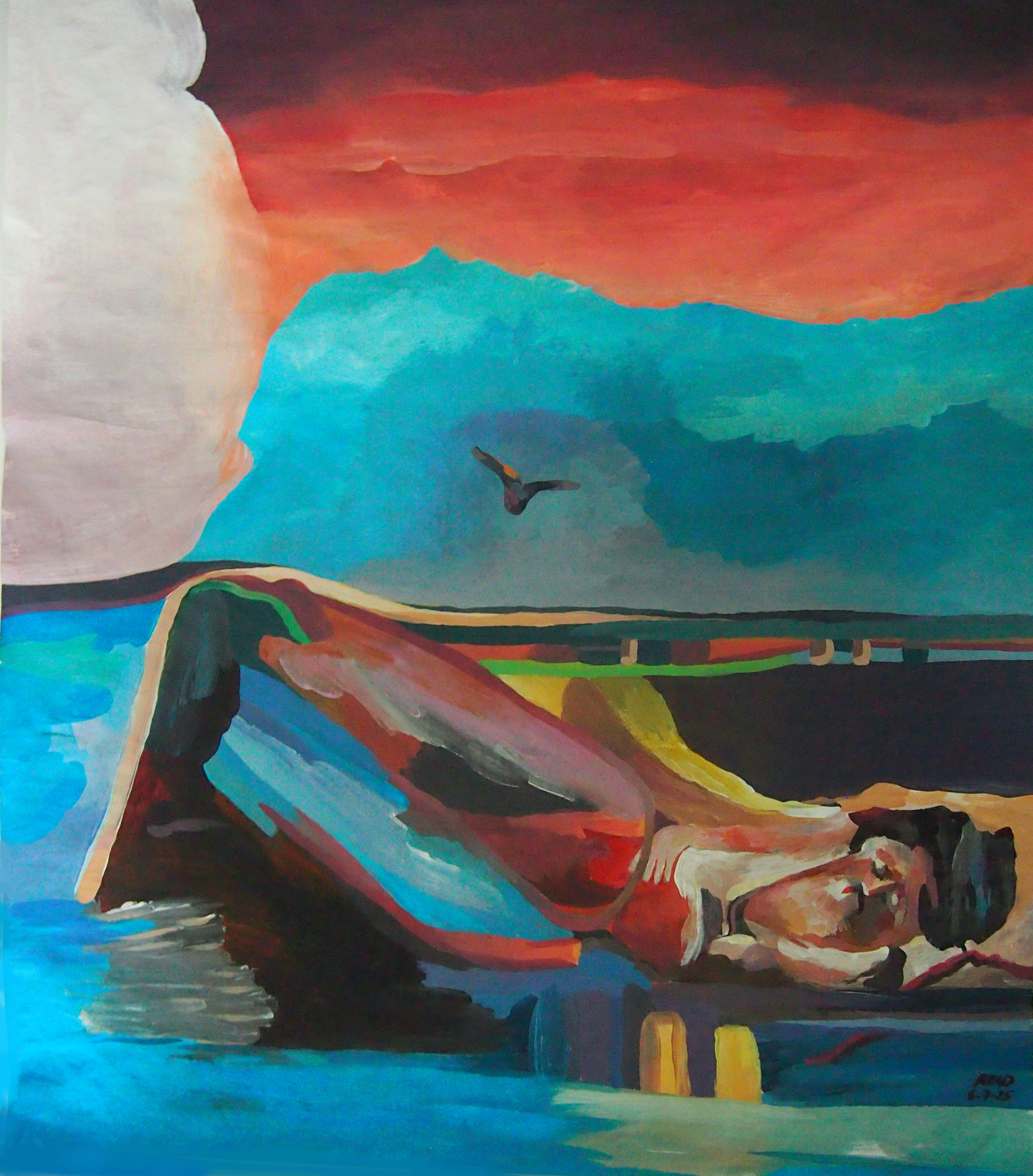 Little ship with the sky, Acrylic on paper