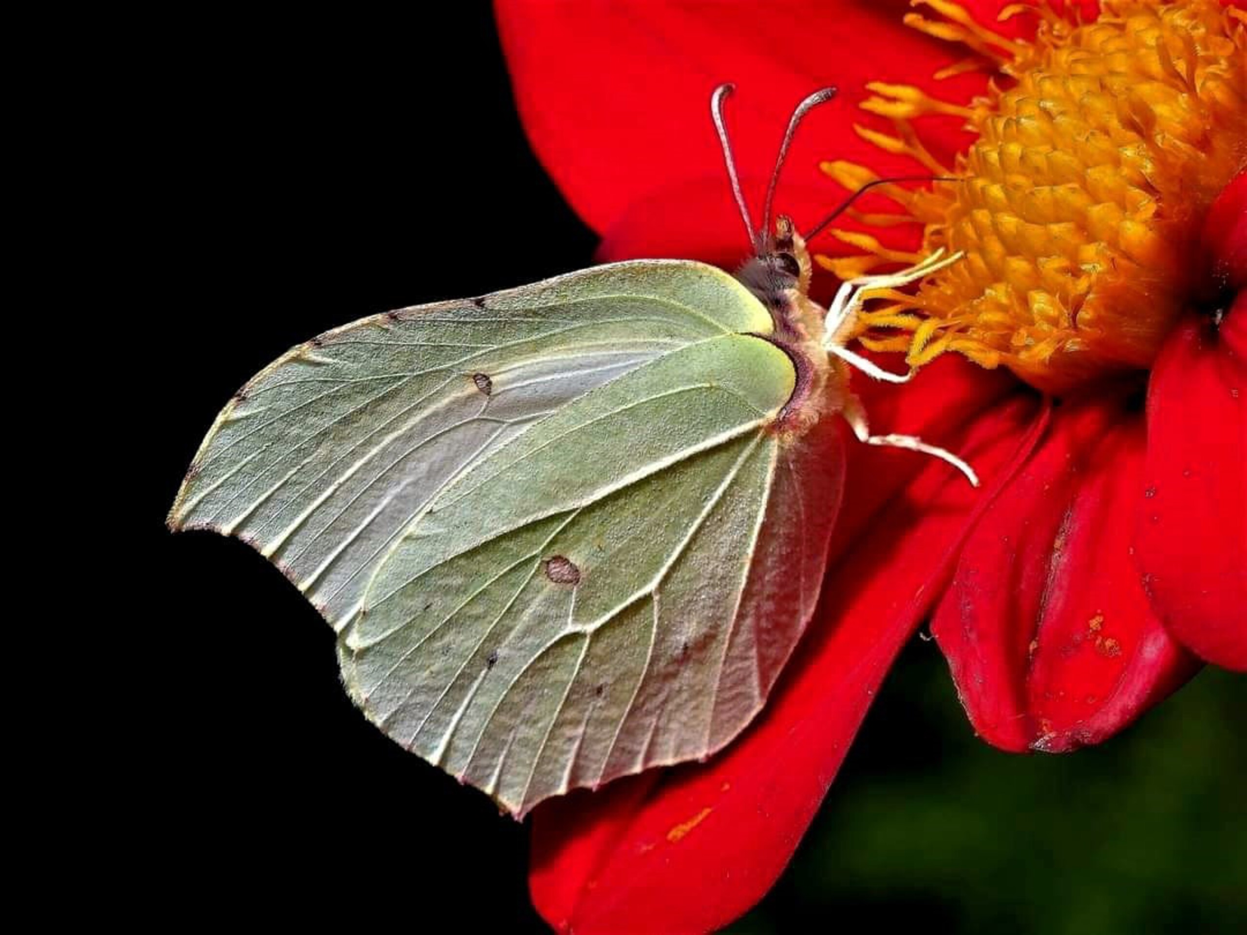 Vlinder Rood Geel Citroenvlinder Natuur Buiten Zomer Zon Kleuren Bloemen