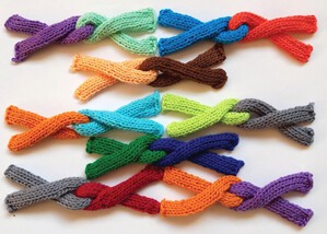 Anna Souverijn (1954) is geboren in Katwijk aan Zee en woont momenteel in Leiden. Zij is autodidact en een enthousiaste maker van tweedimensionaal en ruimtelijk breiwerk. Zij laat zich inspireren door geometrische vormen en abstracte symbolen.