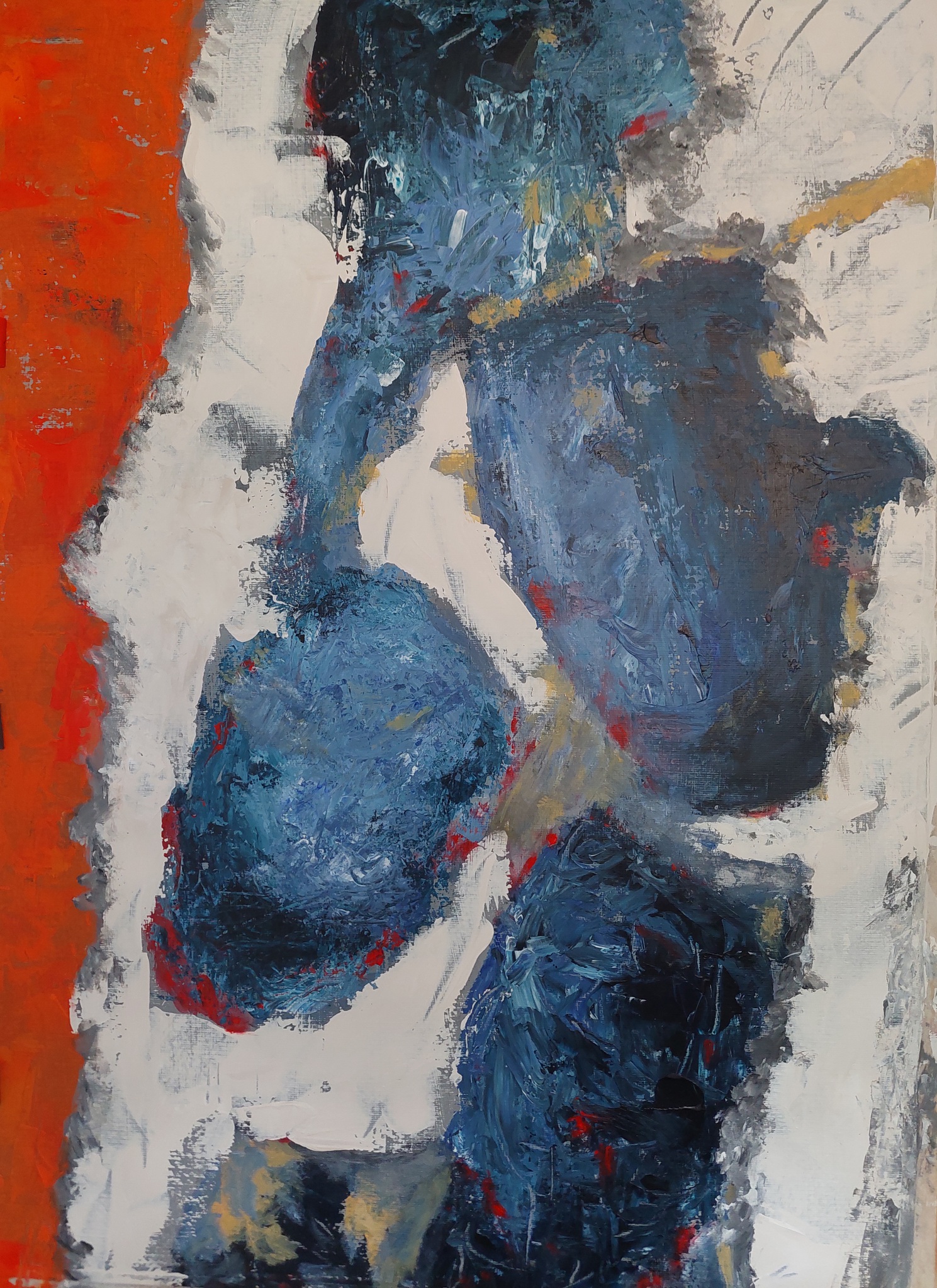 Memory of Frisco vangt de sfeer en energie van San Francisco in krachtige penseelstreken en diepe kleuren. Het intens blauw en ruig wit roepen herinneringen op aan mistige baaien, kliffen en de oceaan, terwijl het warme oranje een knipoog is naar de iconische Golden Gate Bridge bij zonsondergang. Dit abstracte werk ademt beweging en emotie — als een stad vol contrasten die blijft nazinderen in mijngeheugen.