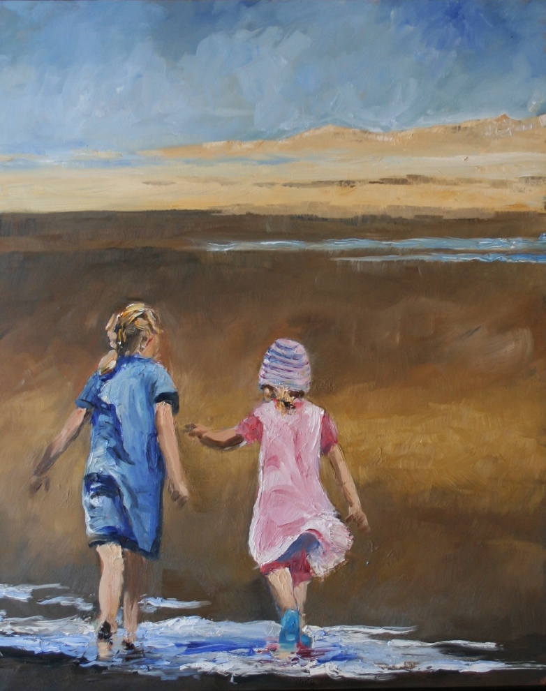 2 meisjes op het strand, impressionistisch opgezet - naar eigen foto