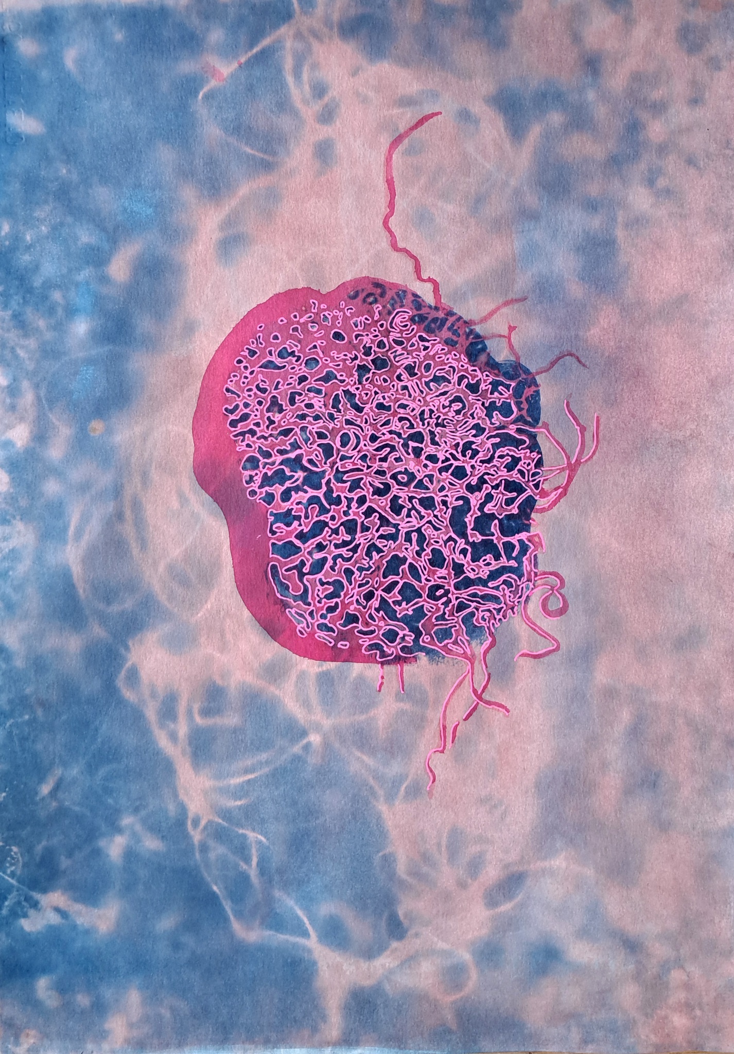 Natuur Cellen Roze Blauw Wit Mixed Media Op Papier Mens Binnenste