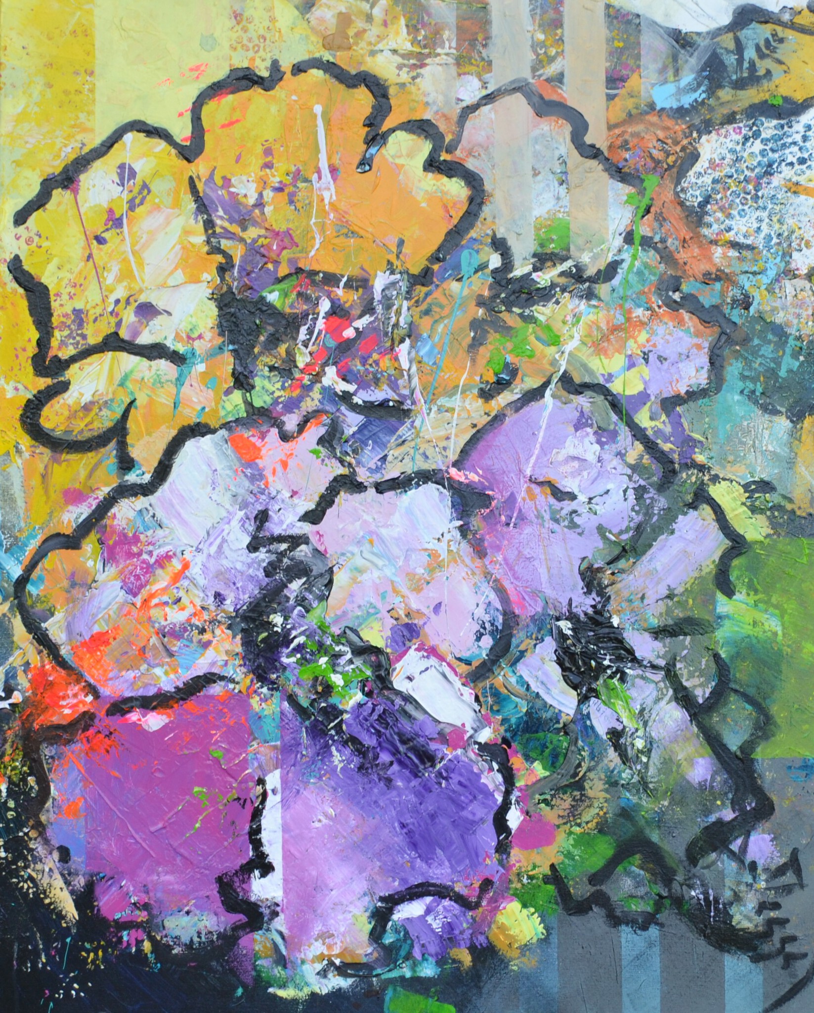 "Summer flowers" acryl op 3D doek zijkanten meegeschilderd