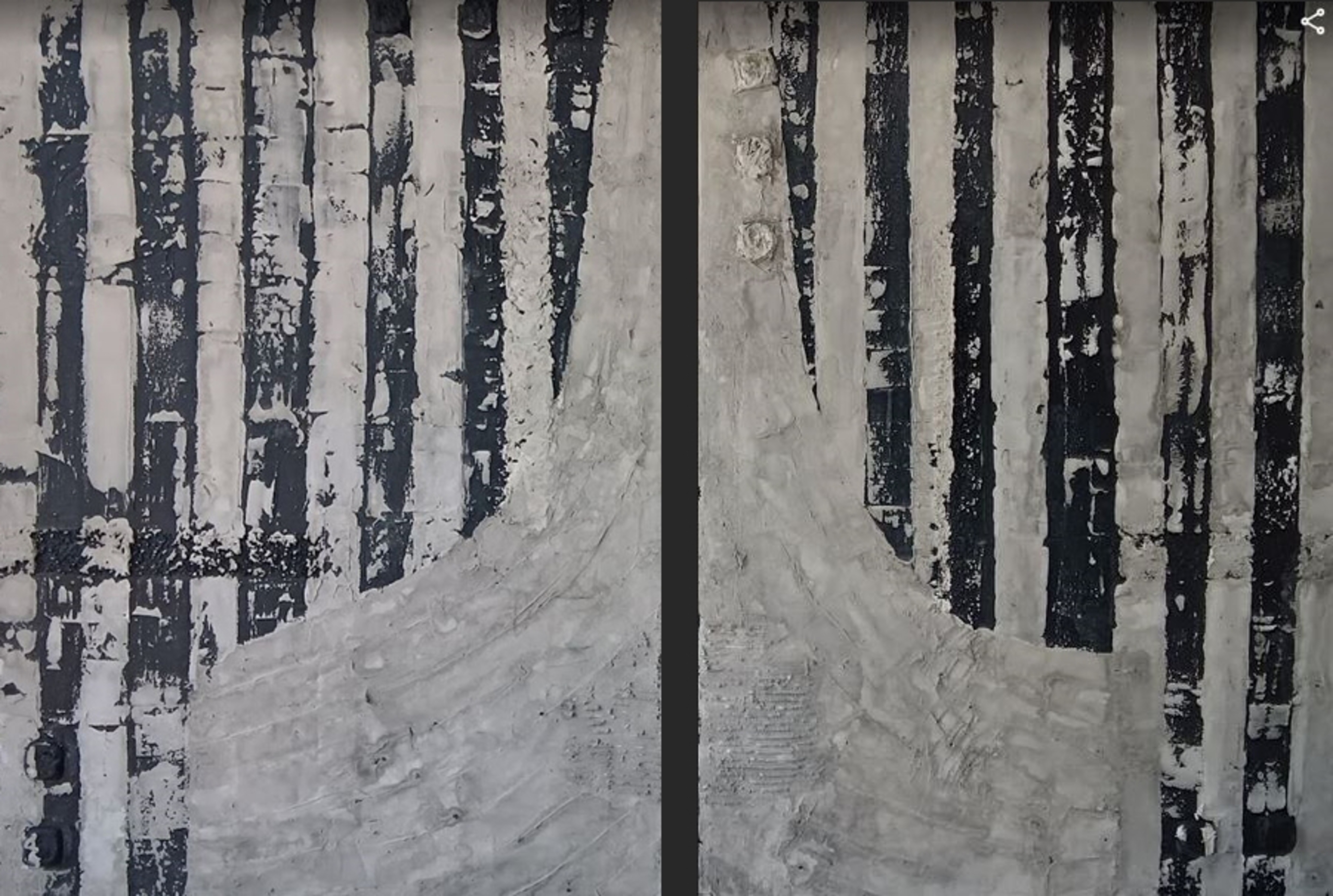 Twin '' Always a way out " zijn behoorlijk ruige doeken. Gesloten en toch open, er is altijd weer een opening, een oplossing. De twee doeken vormen samen een groot schilderij. De kleuren zwart en wit zijn gebruikt met een grijze sluier. Het werk is 70 breed en 90 hoog, dus samen vormen zij een breedte van 145 bij 90 cm. Prijs : 750 €