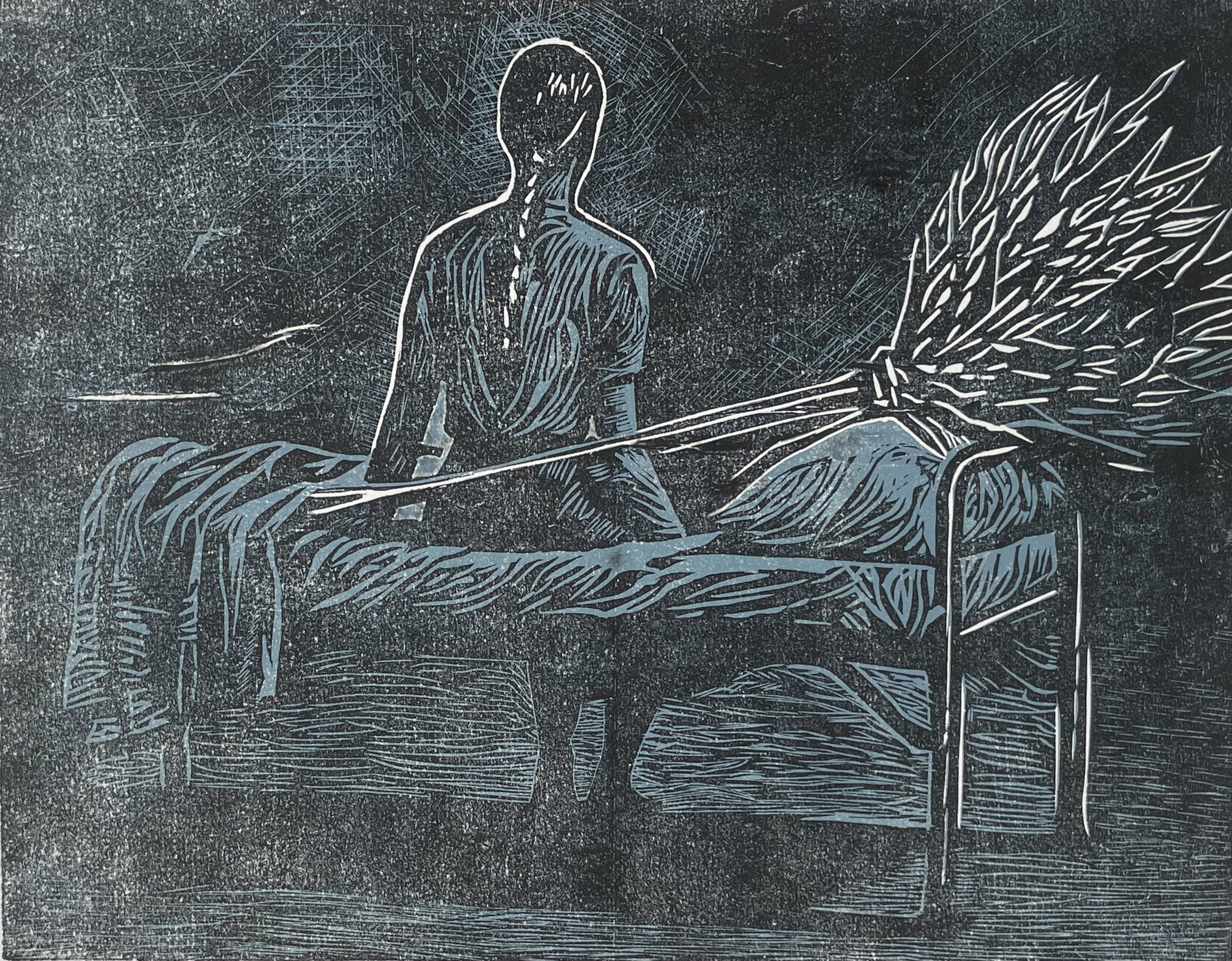Ik ben linokunstenaar in Gorssel. Mensen in interactie inspireren me. Ik kies beelden van straat, theater en film. Foto’s helpen me om scherp te kijken, tot keuzes te komen.