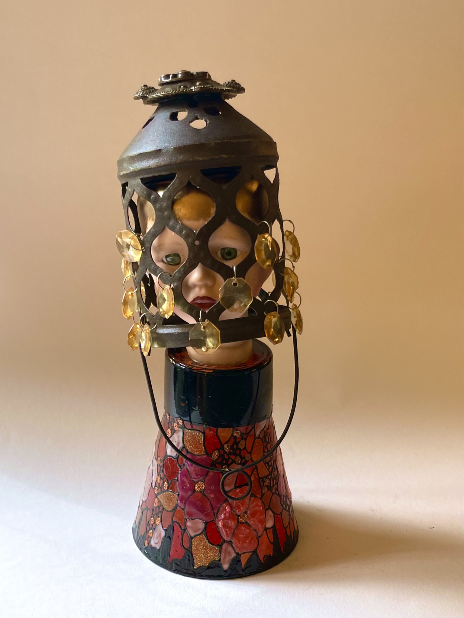 Dit porseleinen poppenhoofdje heb ik een nieuw leven gegeven. Assemblage