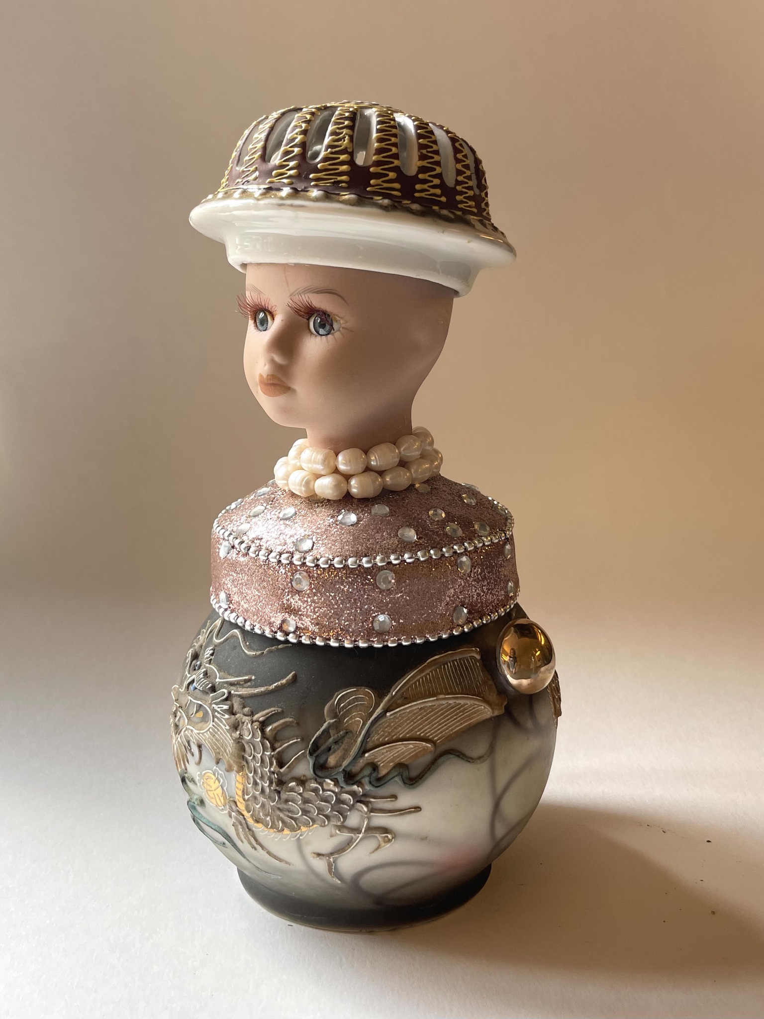 Dit porseleinen poppenhoofdje heb ik een nieuw leven gegeven. Assemblage