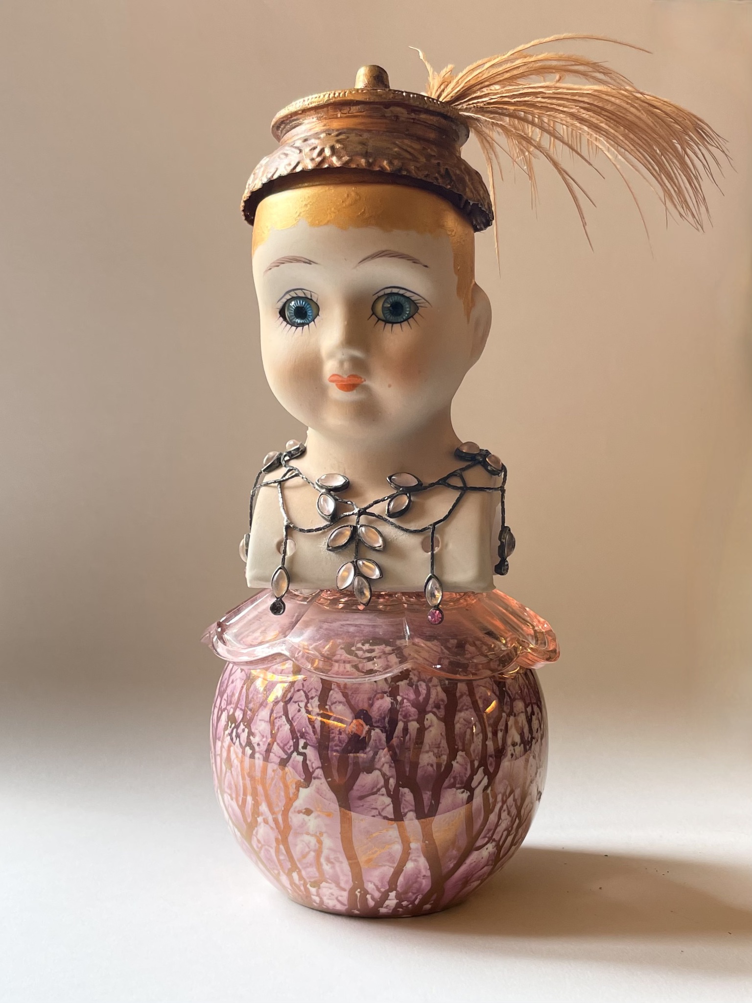 Dit porseleinen poppenhoofdje heb ik een nieuw leven gegeven. Assemblage