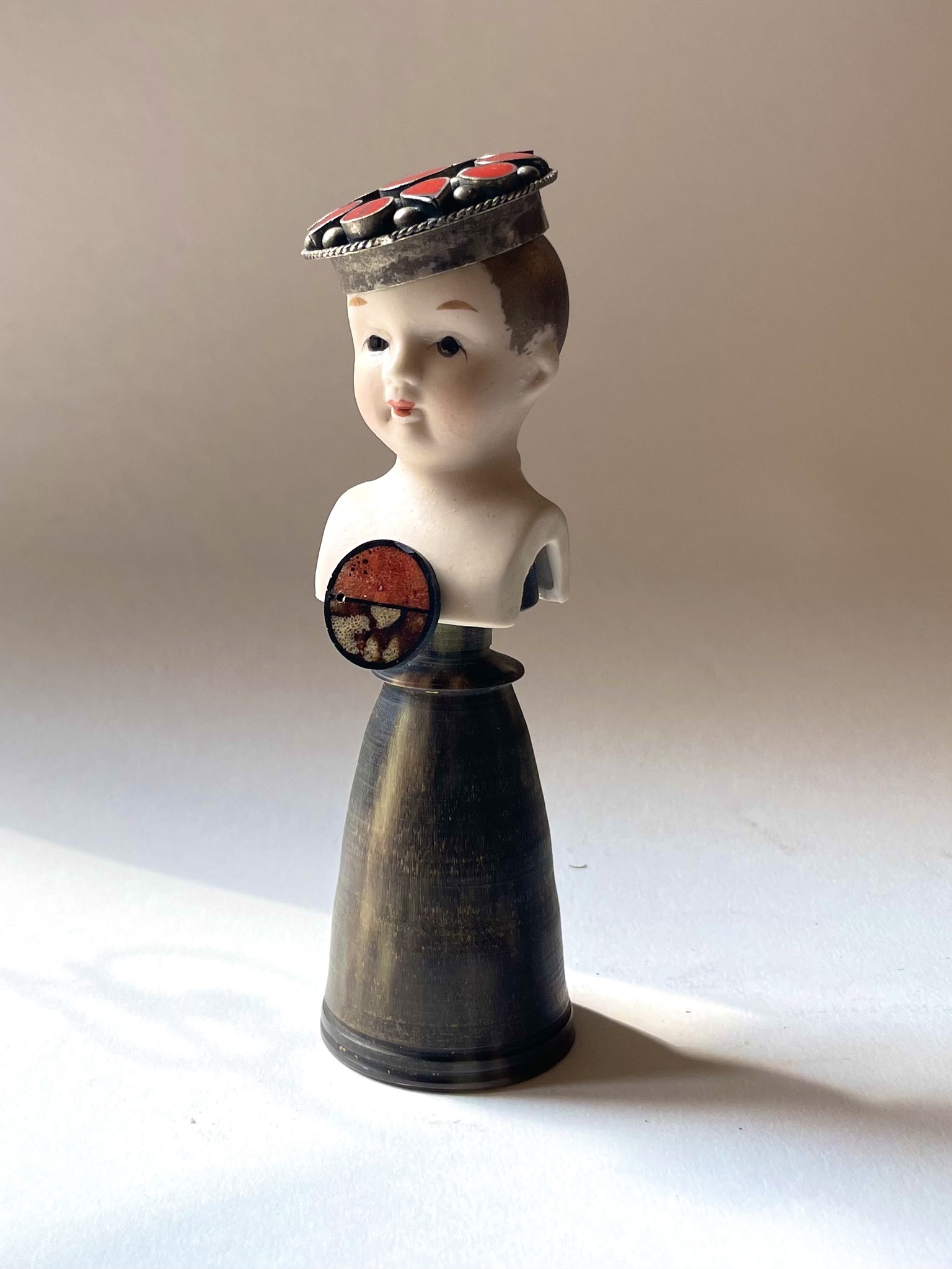 Dit porseleinen poppenhoofdje heb ik een nieuw leven gegeven. Assemblage
