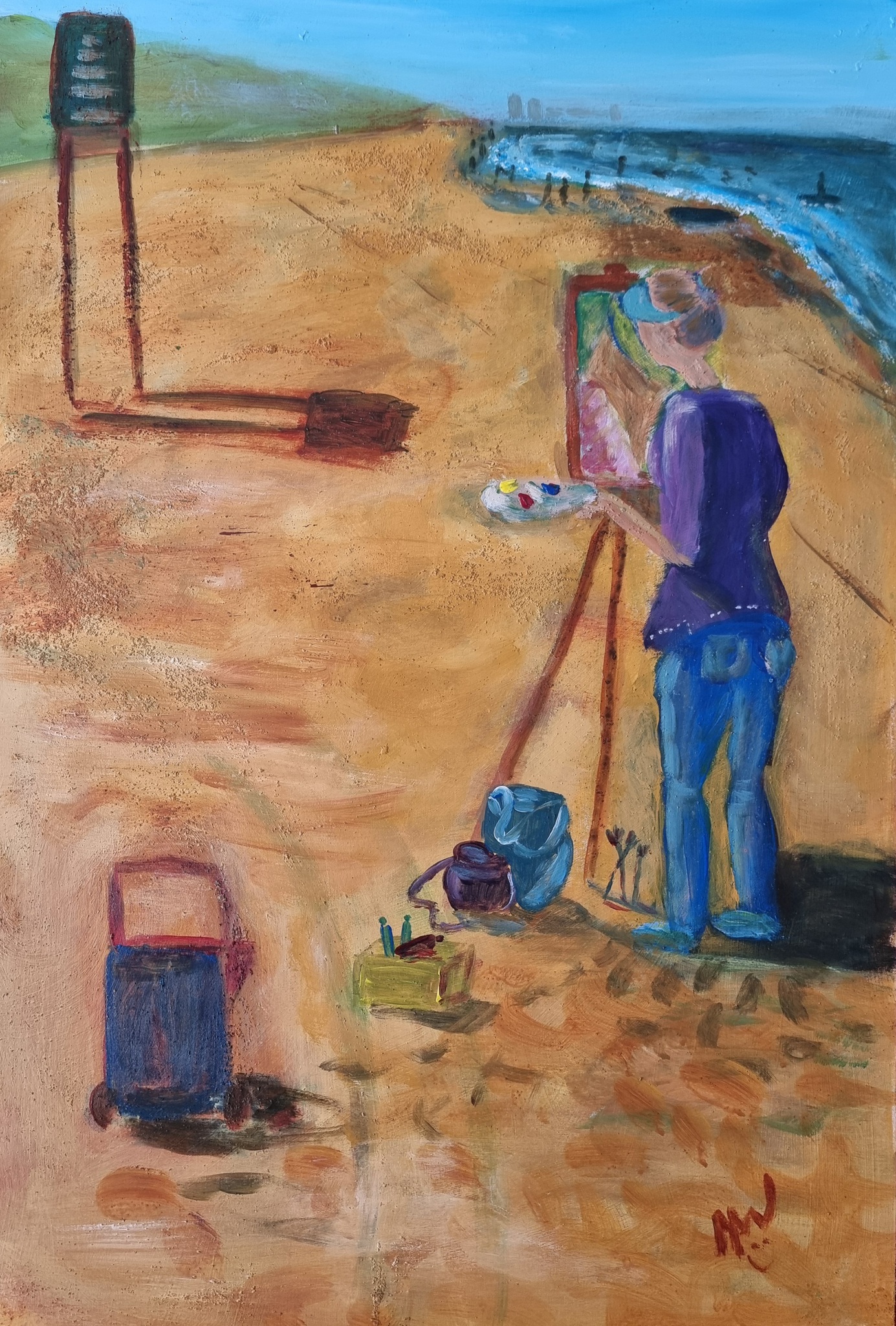 Op het prachtige strand van katwijk mijn mede schilder op het doek gevangen, les van @mariskadekok