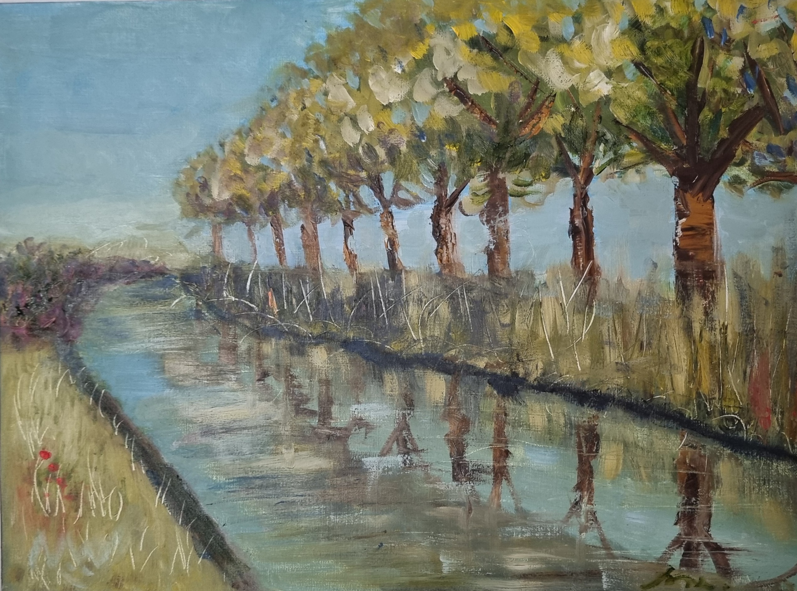 Pleinair tijdens de buitenschilderweek leusden Woudenberg aan het Valleikanaal bij Aaltje ad linie.