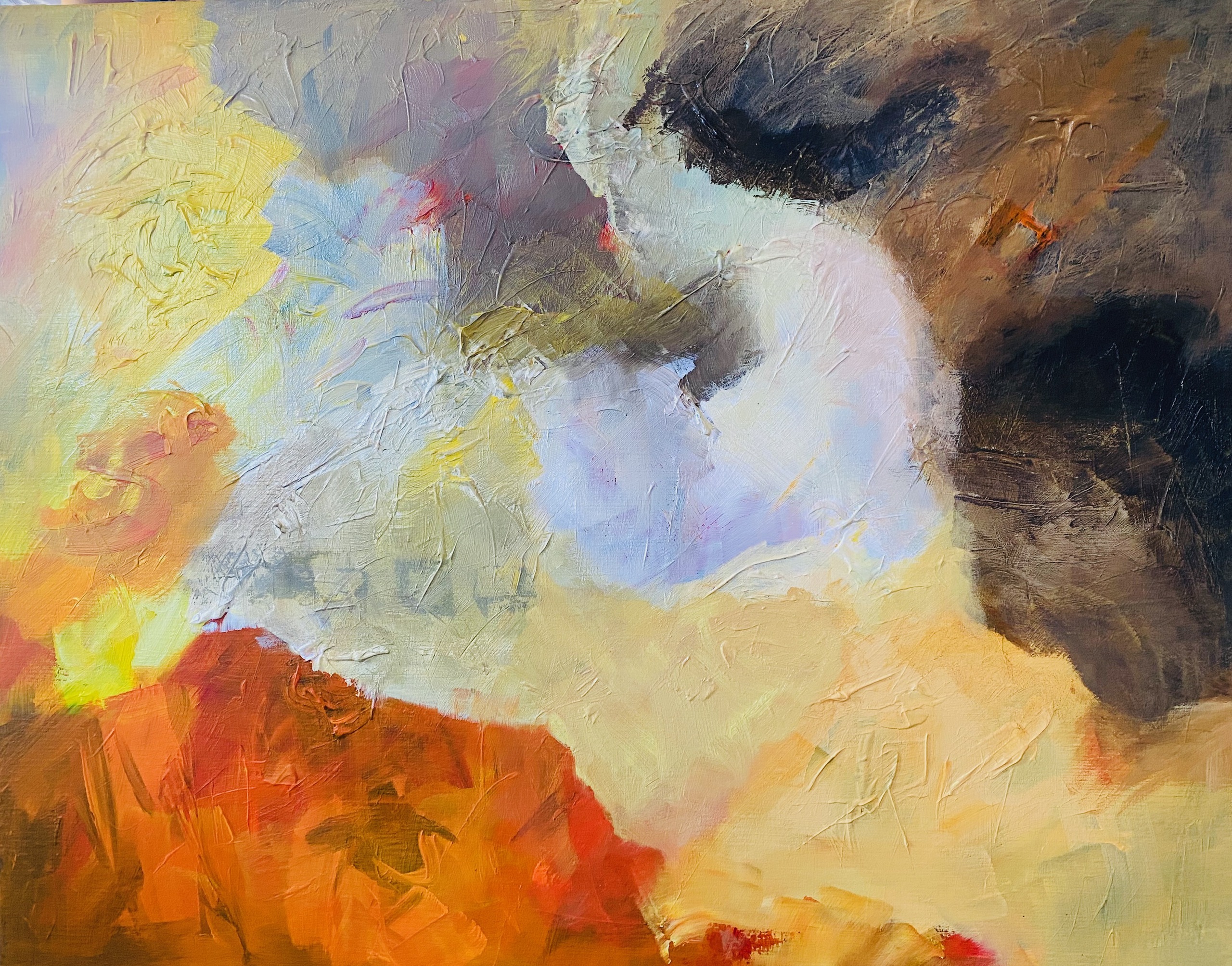 'Het landschap als vertrekpunt'. De natuur wil ik in al haar kleur, licht en donker, vormen en structuren weergeven. Mijn ontwikkeling blijft doorgaan, er is zoveel om naar te kijken en uit te drukken op het doek.