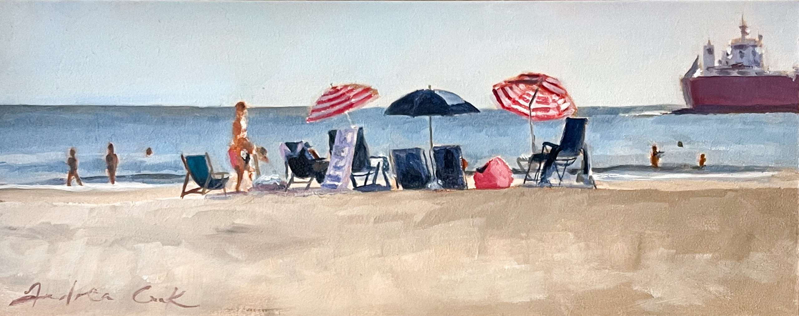 Andrea Cook komt uit Engeland, alwaar zij afstudeerde in de architectuur aan de Universiteit van Sheffield. In haar schilderijen wordt zij geïnspireerd door de kracht van eenvoud en het plezier van kleur-schakeringen.
