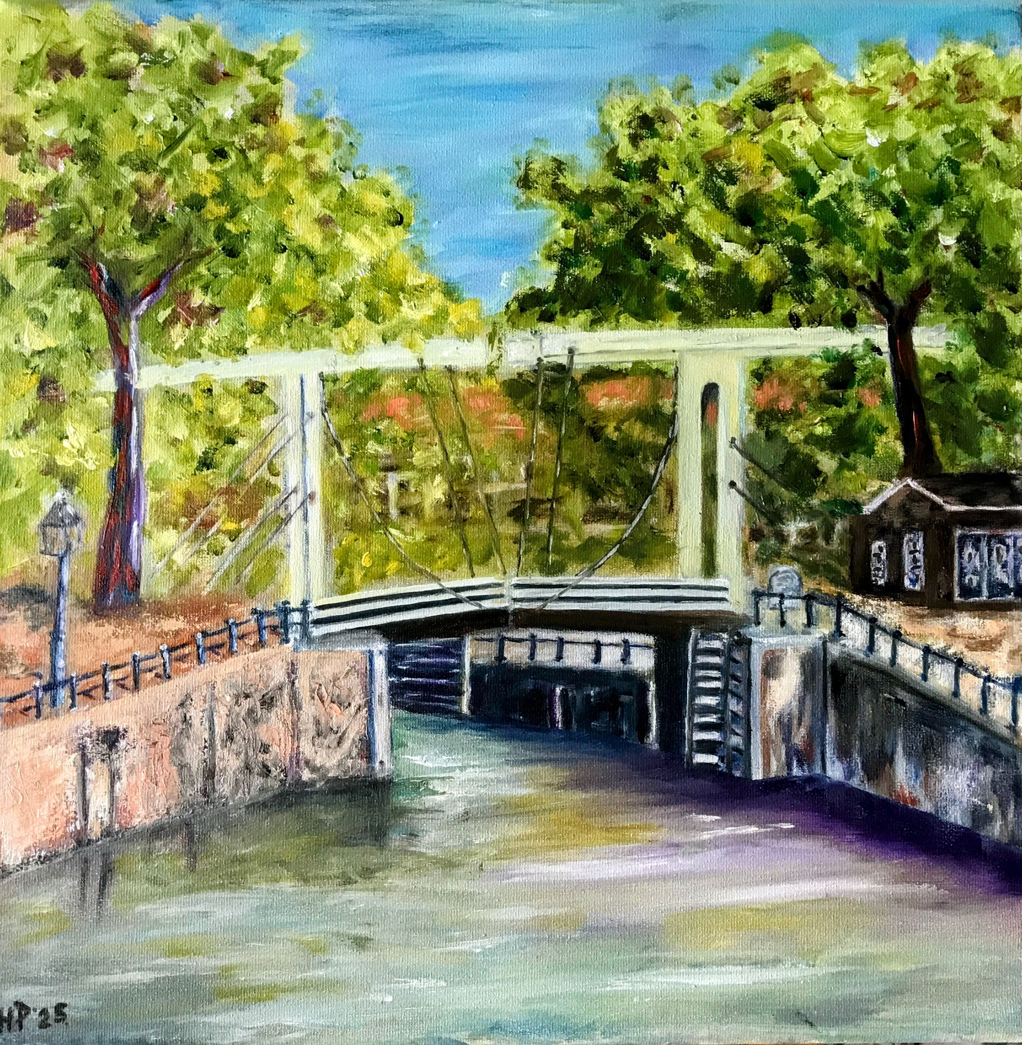 Water Olieverf Bomen Witte Impressionisme Brug Houten Impressionistisch Sluis Vreeswijk