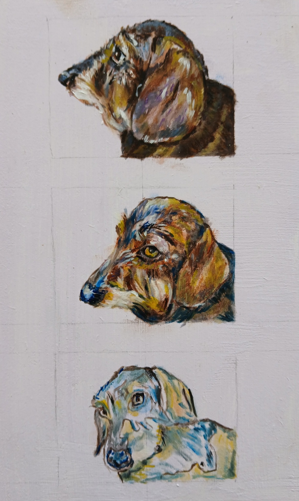 Olieverf schets van ruwharig teckeltje