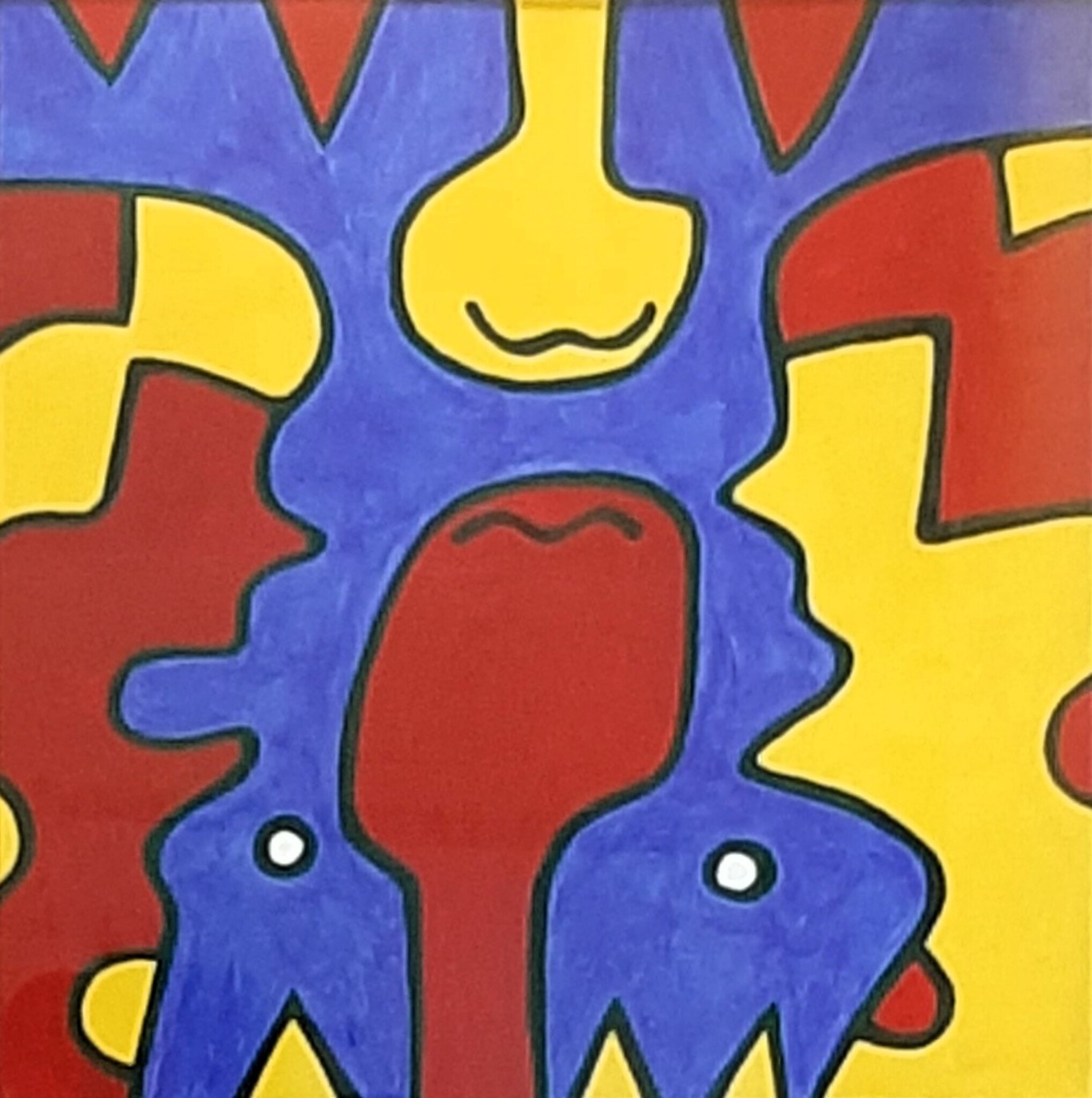 Dit werk is een onderdeel van een vierluik. Deze bestaat uit: Conversation Piece In Blue Conversation Piece In Yellow Conversation Piece In Green Conversation Piece In Red Ik hoop dat mijn werk genoeg gespreksstof oplevert;-