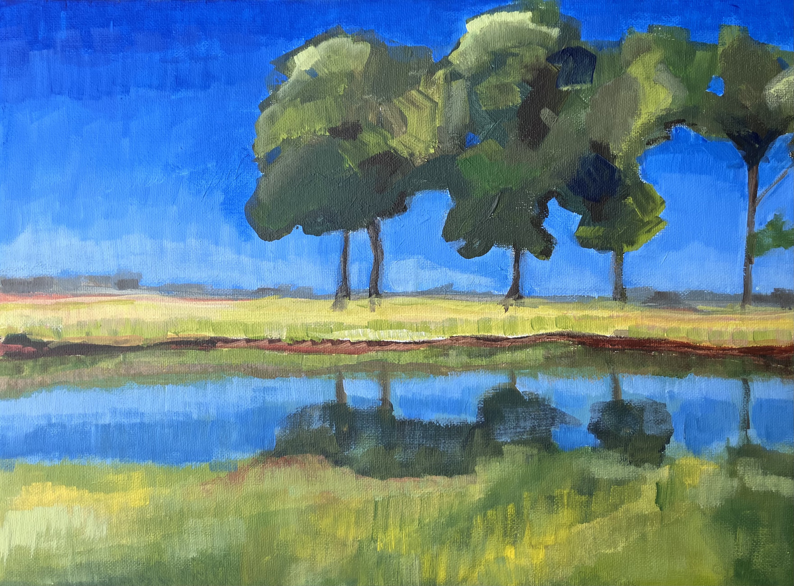 Landschap, impressies daarvan ,stille plekken waar ik graag was, af en toe een stilleven. Meestal in olieverf, soms aquarel. Kleur is waar ik van hou.
