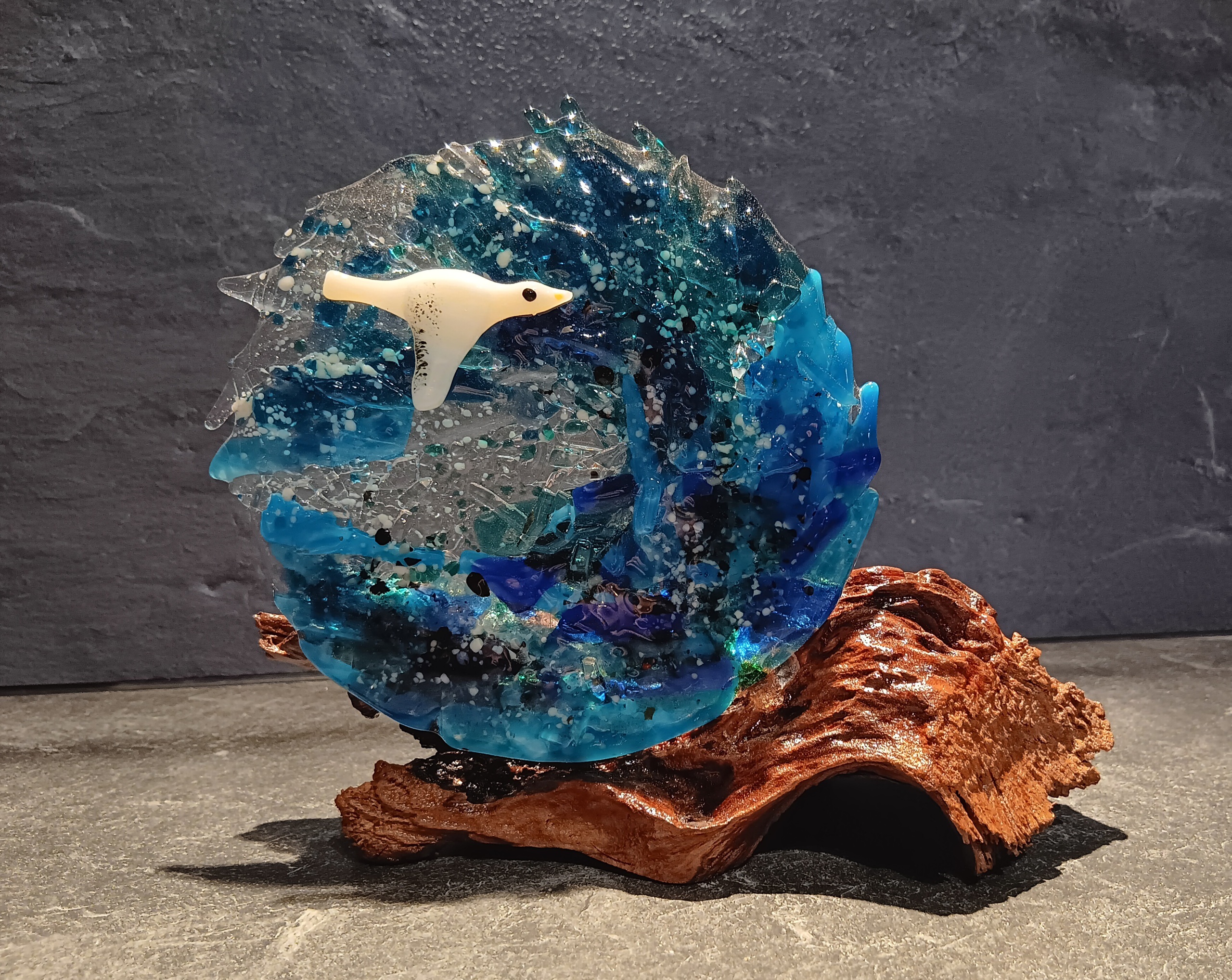 The Seaside - een eenvoudige combinatie van gesmolten glas en drijfhout. Je voelt de zee.