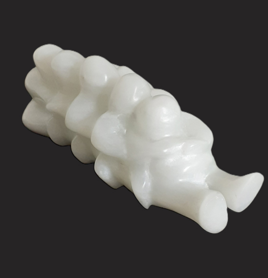 5 mensfiguren achter elkaar zittend, gemaakt van iraans wit speksteen.