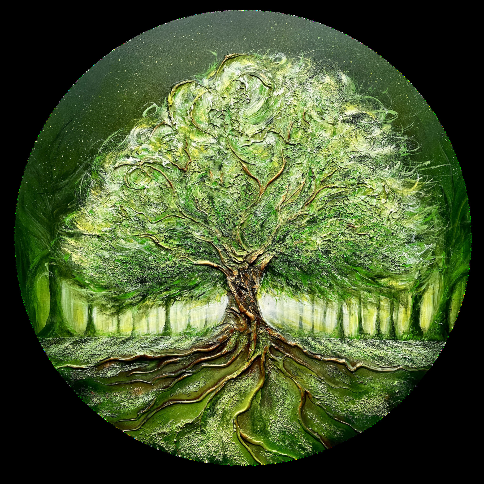 Houd er rekening mee dat het schilderij in kwestie een aanzienlijk stuk is, met een gewicht van ongeveer 7 kg en een uitgebreide textuur. Vanwege de omvang en het gewicht kan ik helaas geen koeriersbezorging regelen. Dit kunstwerk is uitsluitend te koop voor Nederlandse verzamelaars die bereid zijn om het persoonlijk op te halen. Ik waardeer uw begrip hiervoor. Met behulp van acrylverf, aardeverf en spuitverf heb ik een expressieve en metafysische visie gecreëerd die balanceert op de grens van abstractie en symboliek. Stel u dit werk voor als een baken van vitaliteit en contemplatie, dat een transformerende energie in uw ruimte uitstraalt. Het schilderij is voorzien van een heldere, glanzende coating om het te beschermen tegen uv-licht, vocht en stof. Gebruik daarom geen schoonmaakmiddelen. Neem voor meer informatie of foto's van dit schilderij contact met mij op via selenesart@gmail.com.