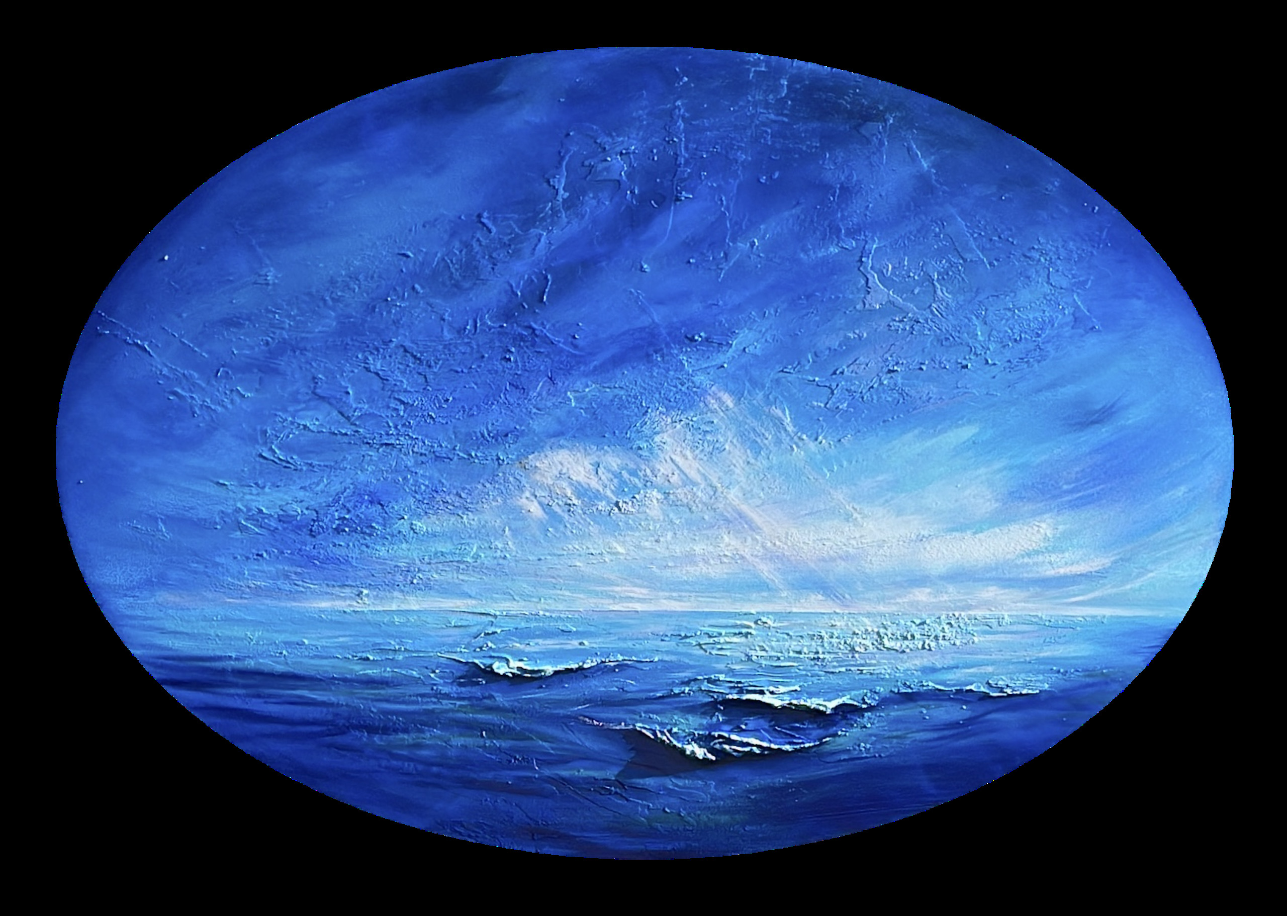 Bij het maken van dit werk dompelde ik mezelf onder in de diepten van emotie en de etherische dans van licht op water. Met mijn penselen en levendige acrylverf probeerde ik de essentie van een oceanisch droomlandschap tot uitdrukking te brengen, waar rust en storm elkaar ontmoeten.
