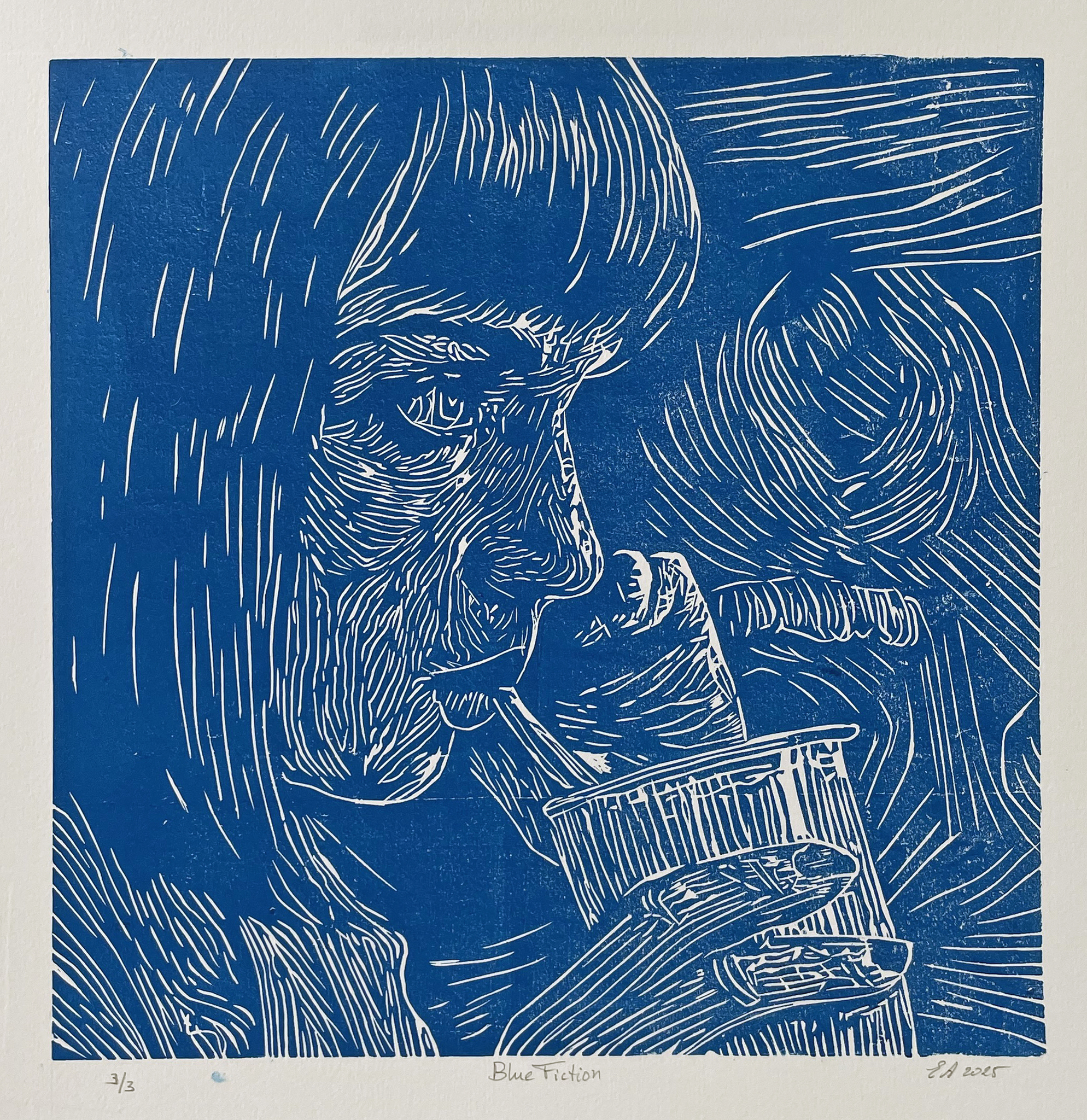 Ik ben linokunstenaar in Gorssel. Mensen in interactie inspireren me. Ik kies beelden van straat, theater en film. Foto’s helpen me om scherp te kijken, tot keuzes te komen.