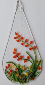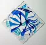 video van de stralen door gaas. Als glas zo vloeibaar is gestookt dat het door het gaas zakt, laat ik de temperatuur snel zakken door de deksel van de oven open te maken. De "val"wordt stil gezet.