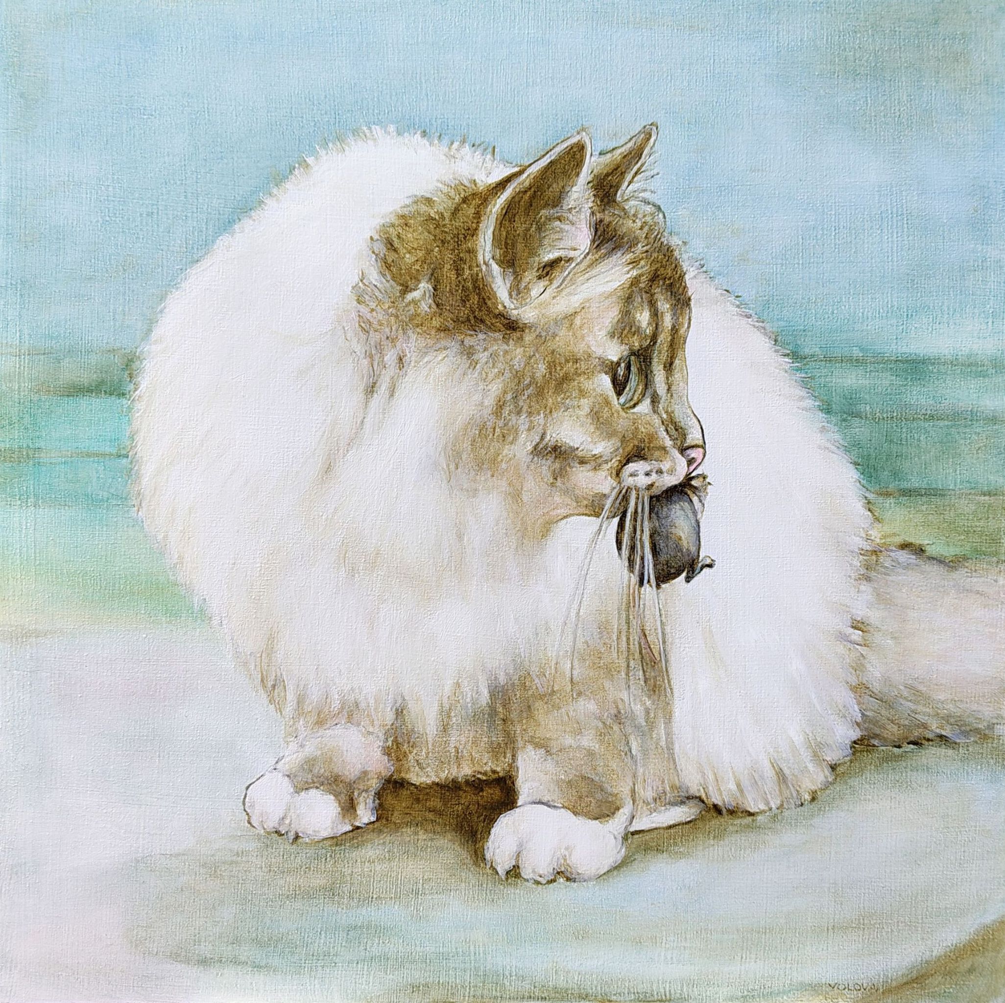 Een tuin van kleur, een blik vol verbeelding. Haar werk ademt een poetische zachtheid, maar ook lef: ze experimenteert graag met bladgoud, olieverf en gemengde technieken.