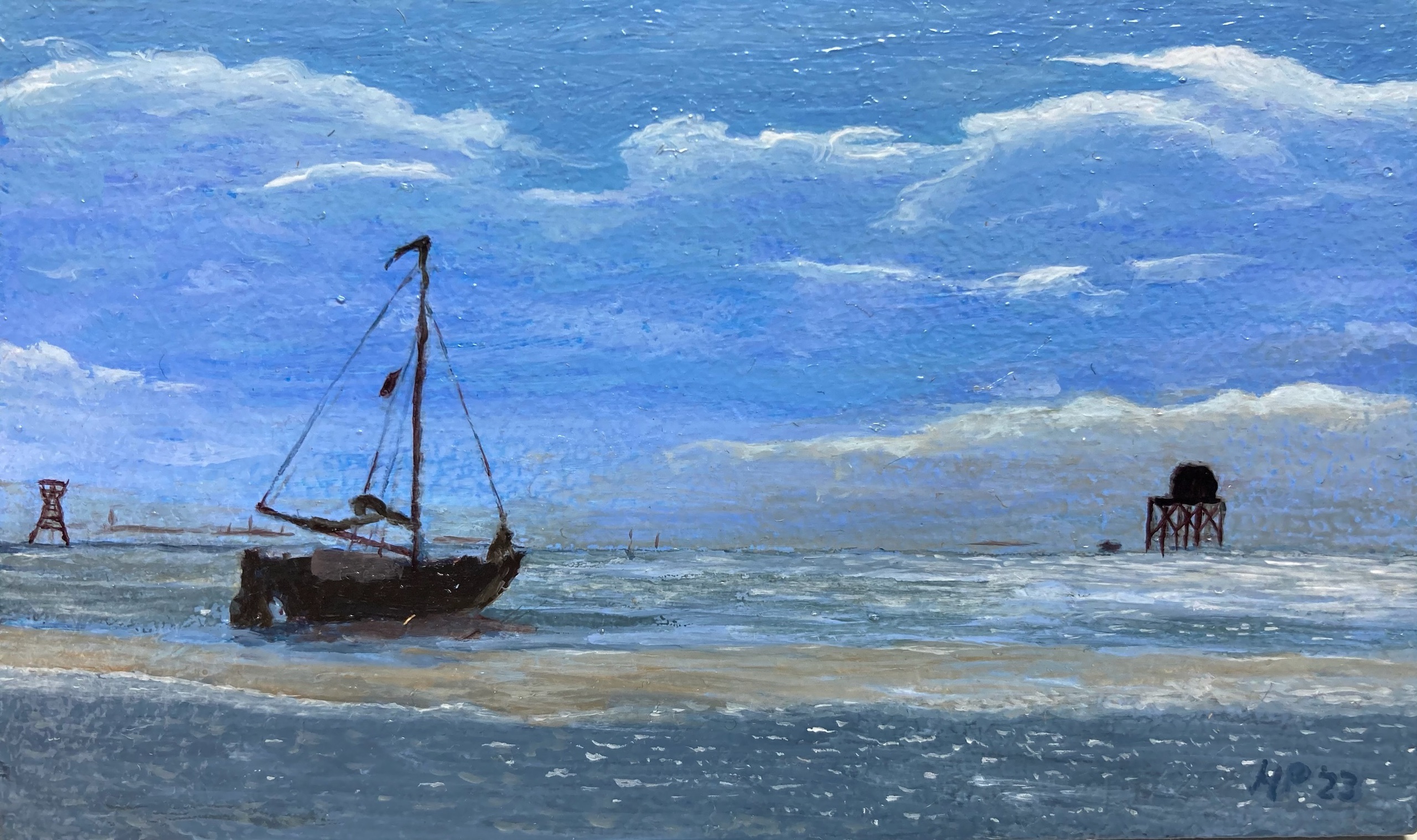 Miniatuurschilderij voor mijn deelname aan de miniatuurtjes-tentoonstelling "Visitekaartjes" bij Galerie Paterswolde in 2023 Olieverf op masonite