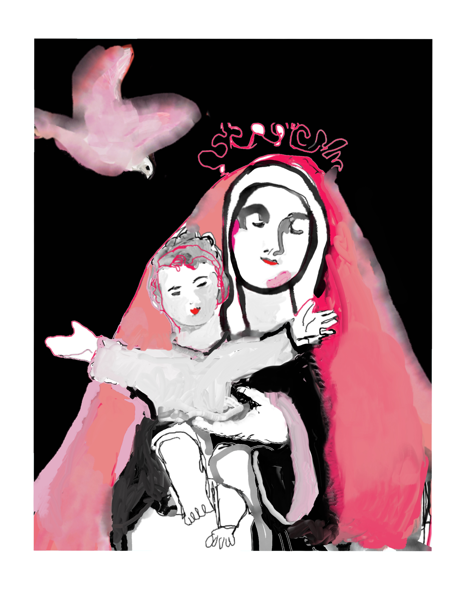 My name is Maria 2, het contrast donker en zacht roze symboliseert het leven. Geeft een sterk sfeerbeeld.