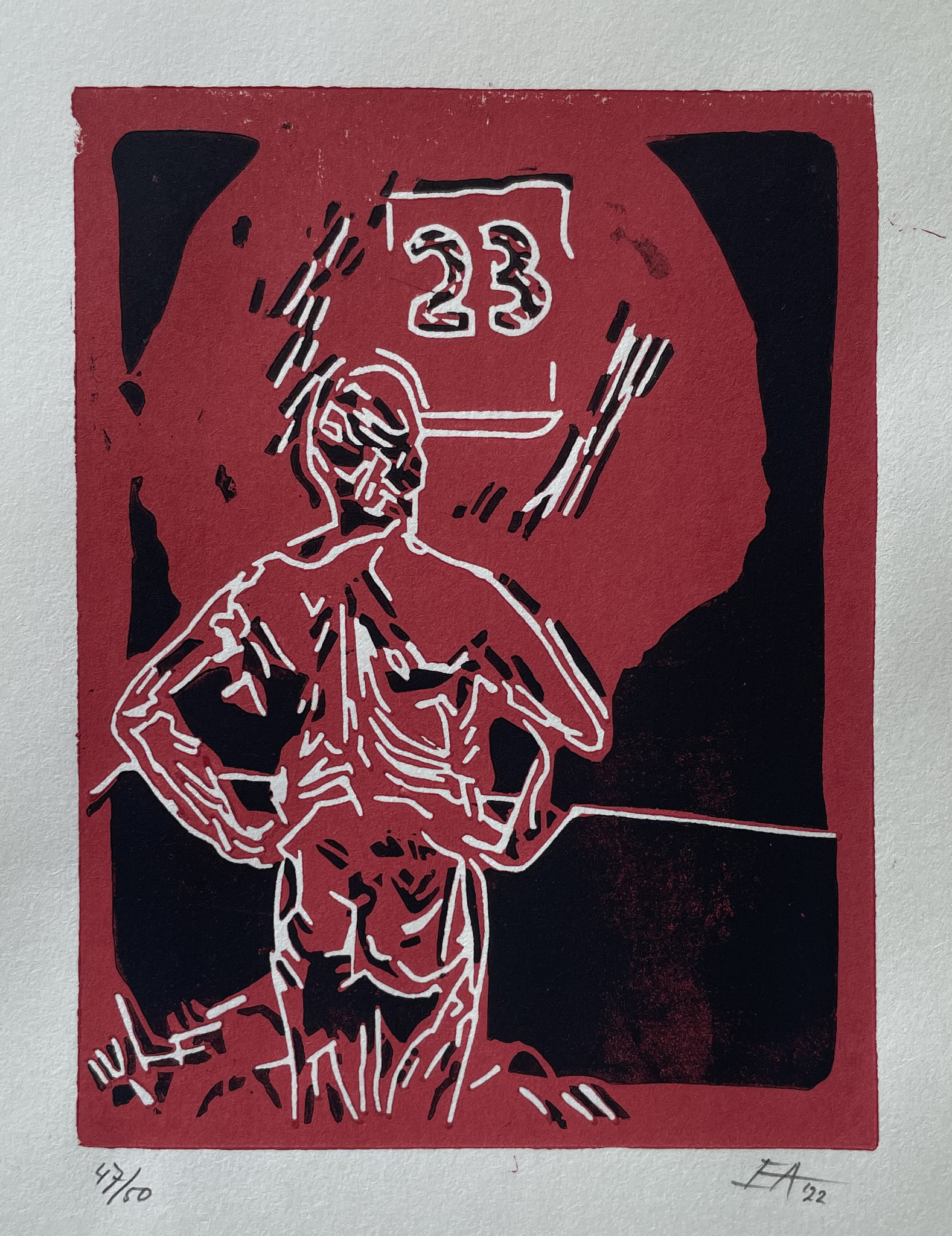 Ik ben linokunstenaar in Gorssel. Mensen in interactie inspireren me. Ik kies beelden van straat, theater en film. Foto’s helpen me om scherp te kijken, tot keuzes te komen.