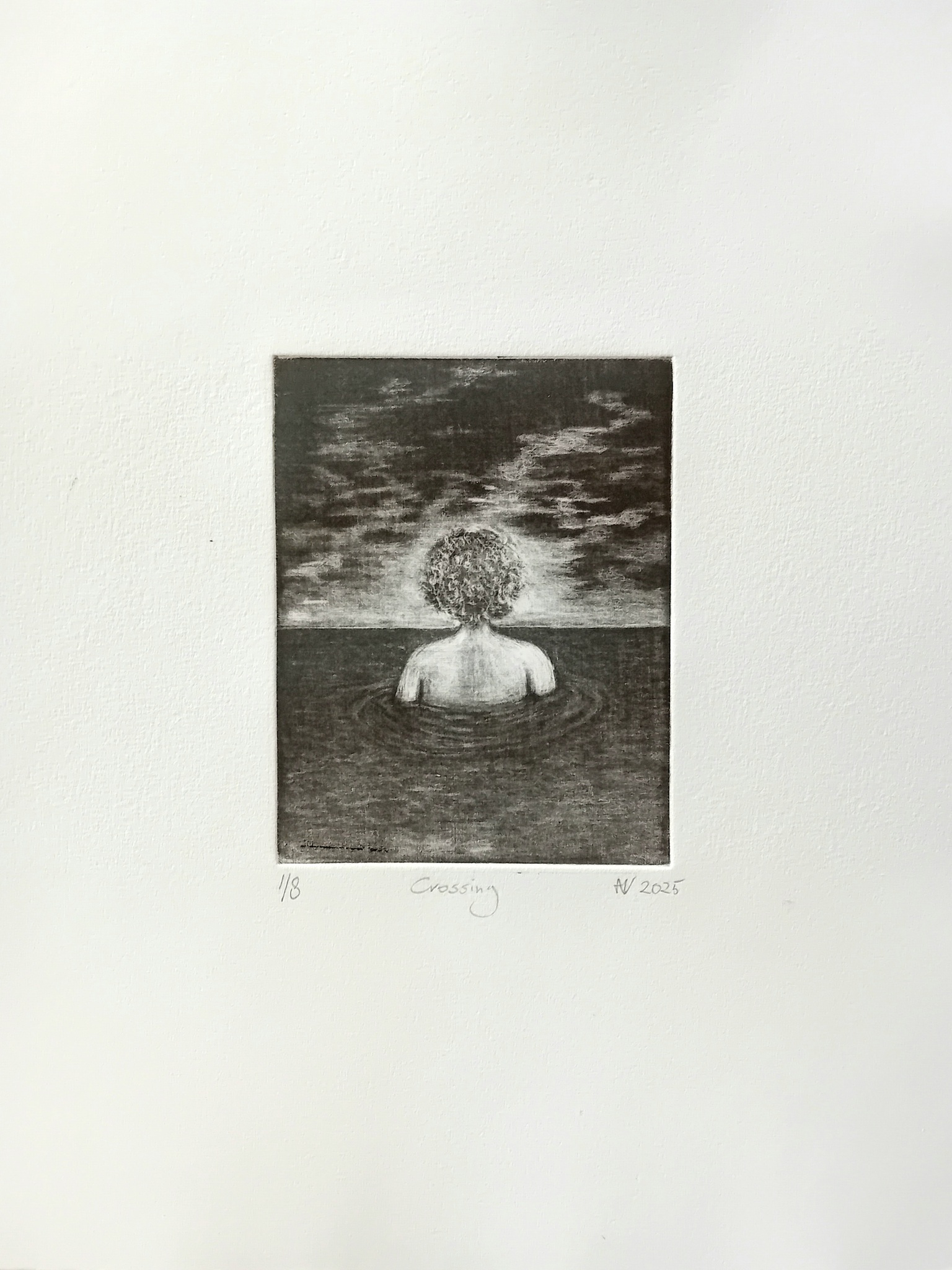 Als graficus werk ik voornamelijk figuratief in de technieken houtsnede, ets en mezzotint. Poëzie, het absurde, humor, mysterie en een fascinatie voor wat mogelijk is binnen kaders, spelen een rol in mijn werk.