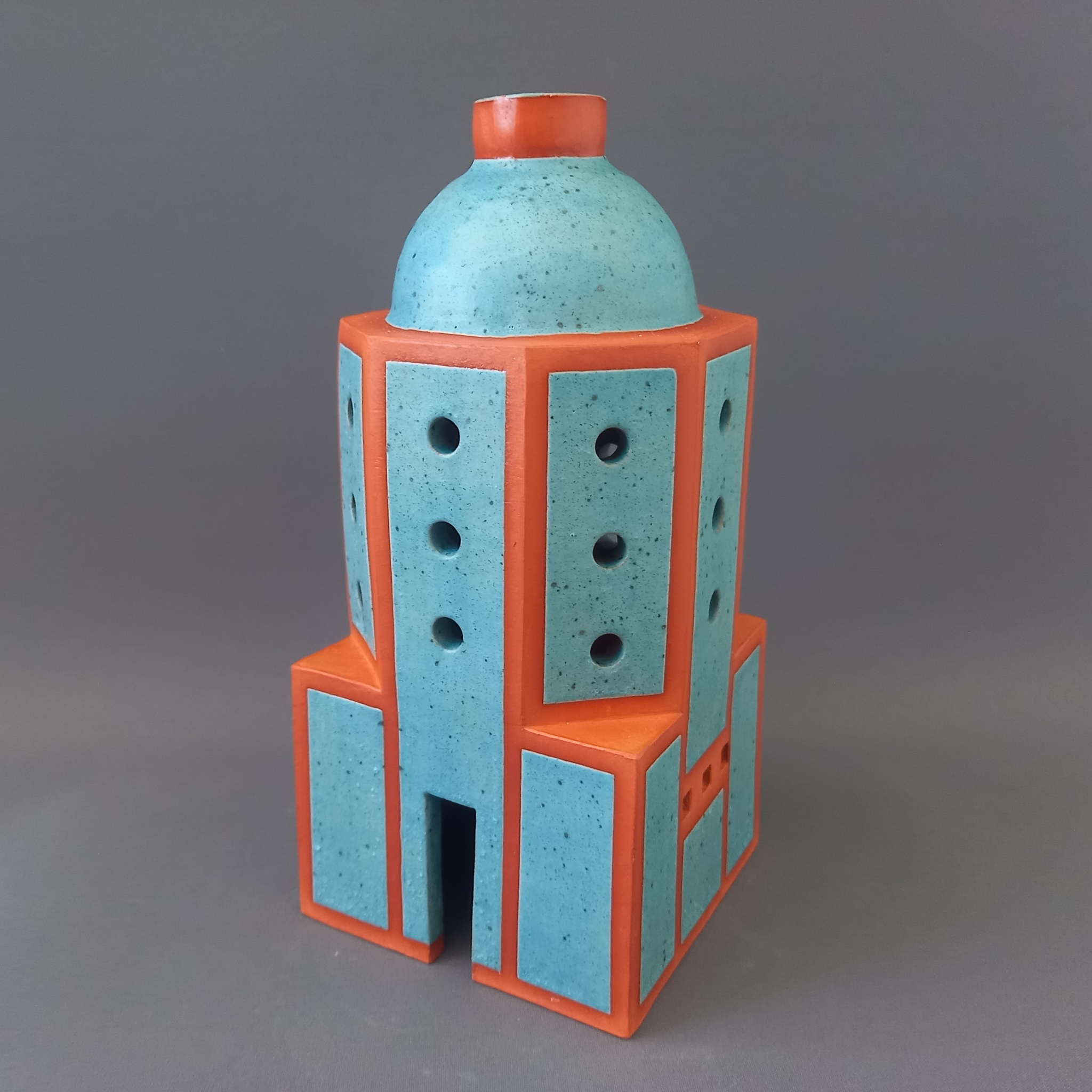 Dome-Kapel. Rode klei en blauw-groen glazuur (met krijttoevoeging)