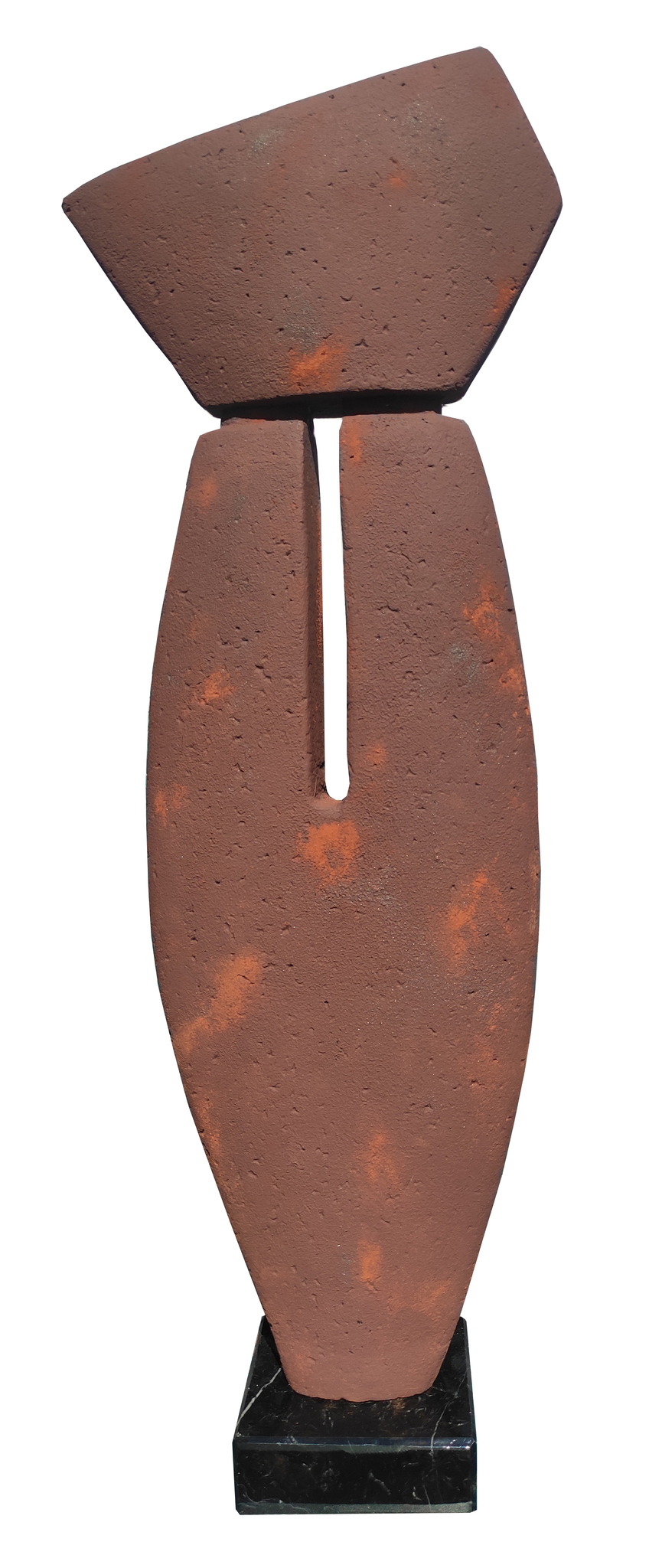 Abstract beeld vervaardigd uit geëxtrudeerd polystyreen en Acrylic One op marmeren sokkel.