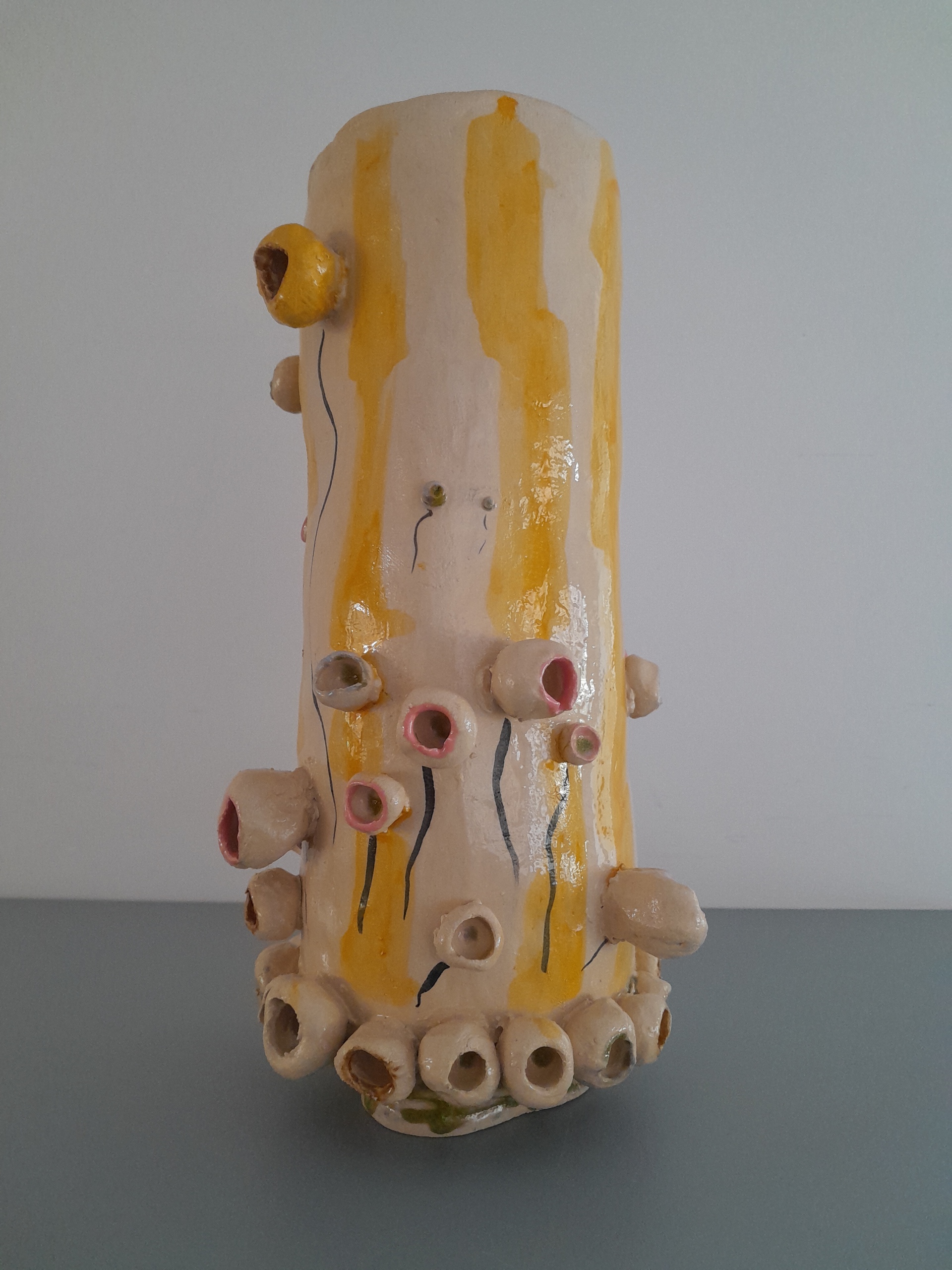 100-Vazen-project – Aardewerk, geglazuurd - proces onderzoek - Alle vazen zijn handgevormd, opgebouwd uit ringen. De vazen zijn cilindervormig en minimaal 30 cm hoog. De vazen lijken elk een eigen karakter te hebben. Hoe verhouden ze zich tot elkaar en tot de ruimte waar ze staan?