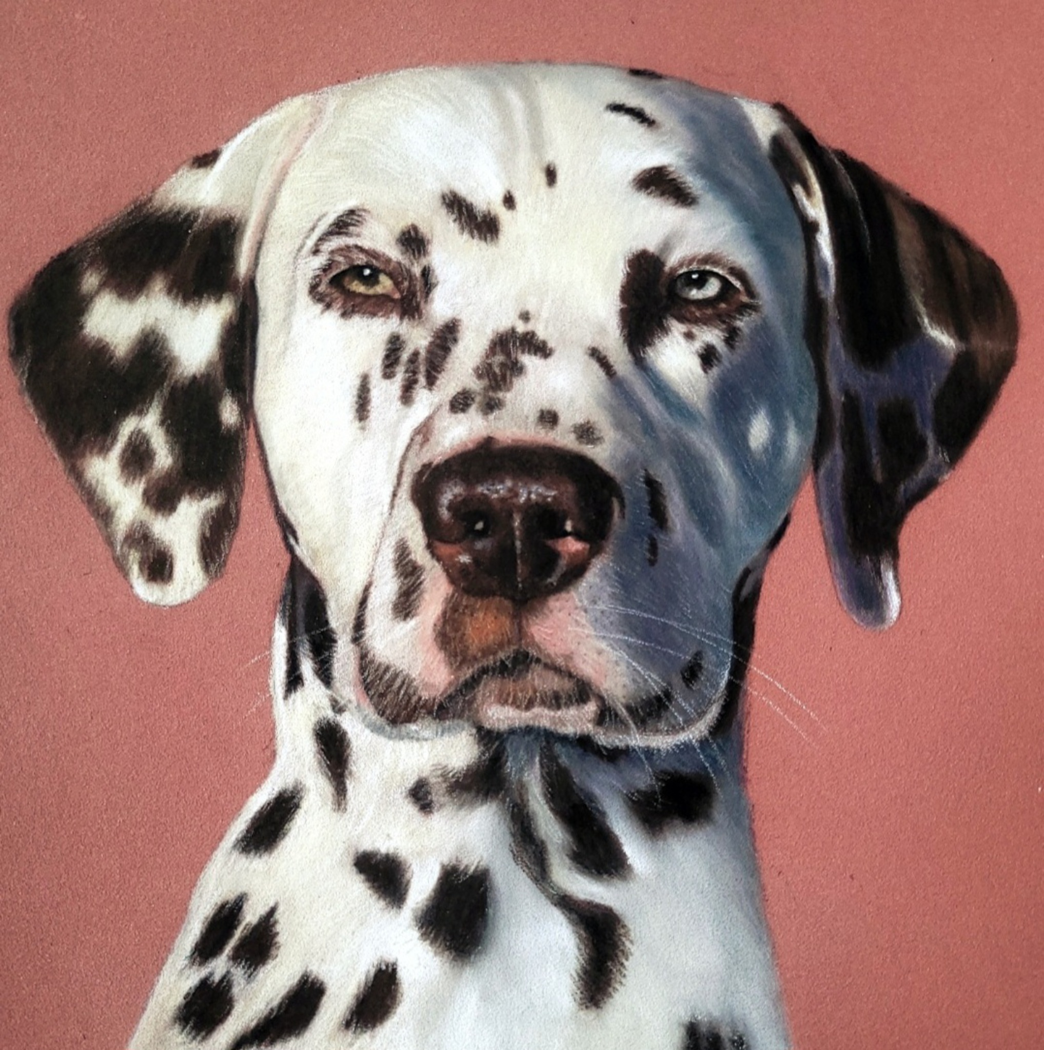 Een voorbeeld van een pastelportret van een hond, zodat ik mijn tekenstijl kan laten zien.