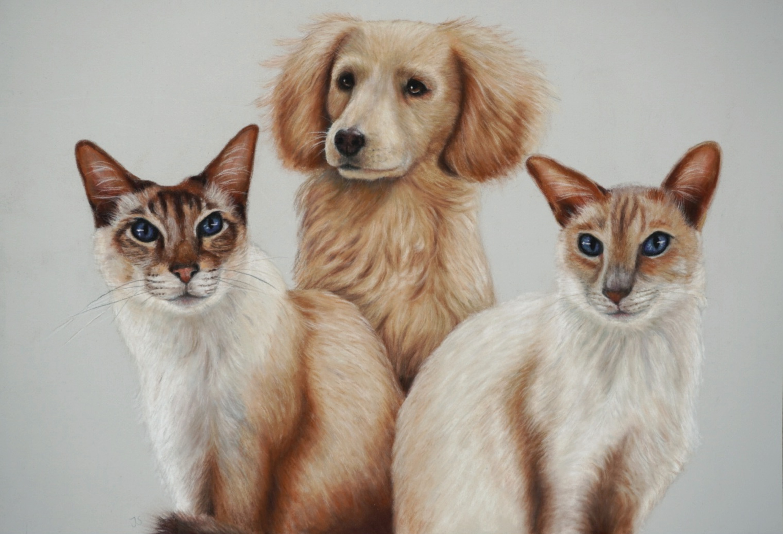 Mijn naam is Josette Spapens en ik teken met pastelkrijt, grafiet of houtskool portretten van mensen en dieren. Zo kan ik dierbaren samenbrengen in één beeld, als blijvende herinnering vol warmte.
