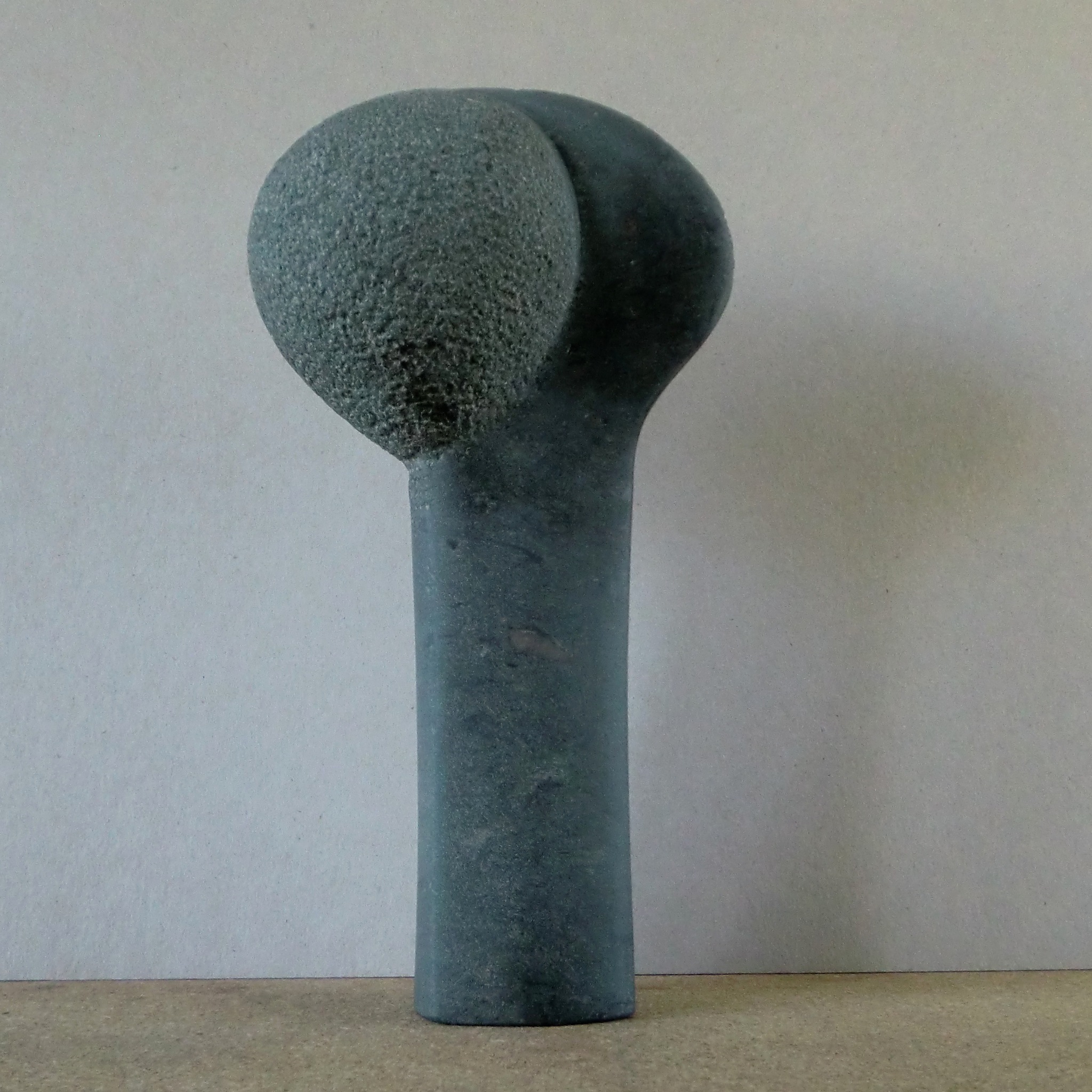 Een klein ruimtelijk beeldje van Duitse Anröchter Grünstein, gedeeltelijk zoet geschuurd, gedeeltelijk gepuntbeiteld. Op de foto zie je het staande, maar liggend komt het ook goed tot uiting.