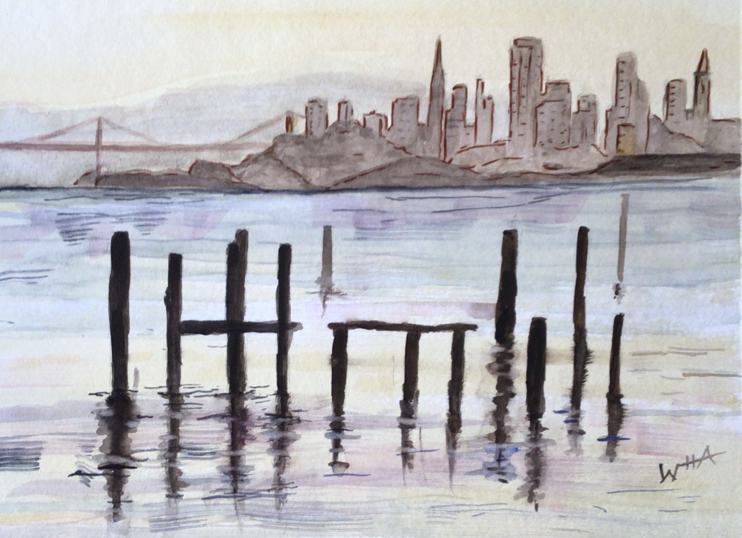 Aquarel Realistisch Watercolor Stadsgezicht Sanfrancisco