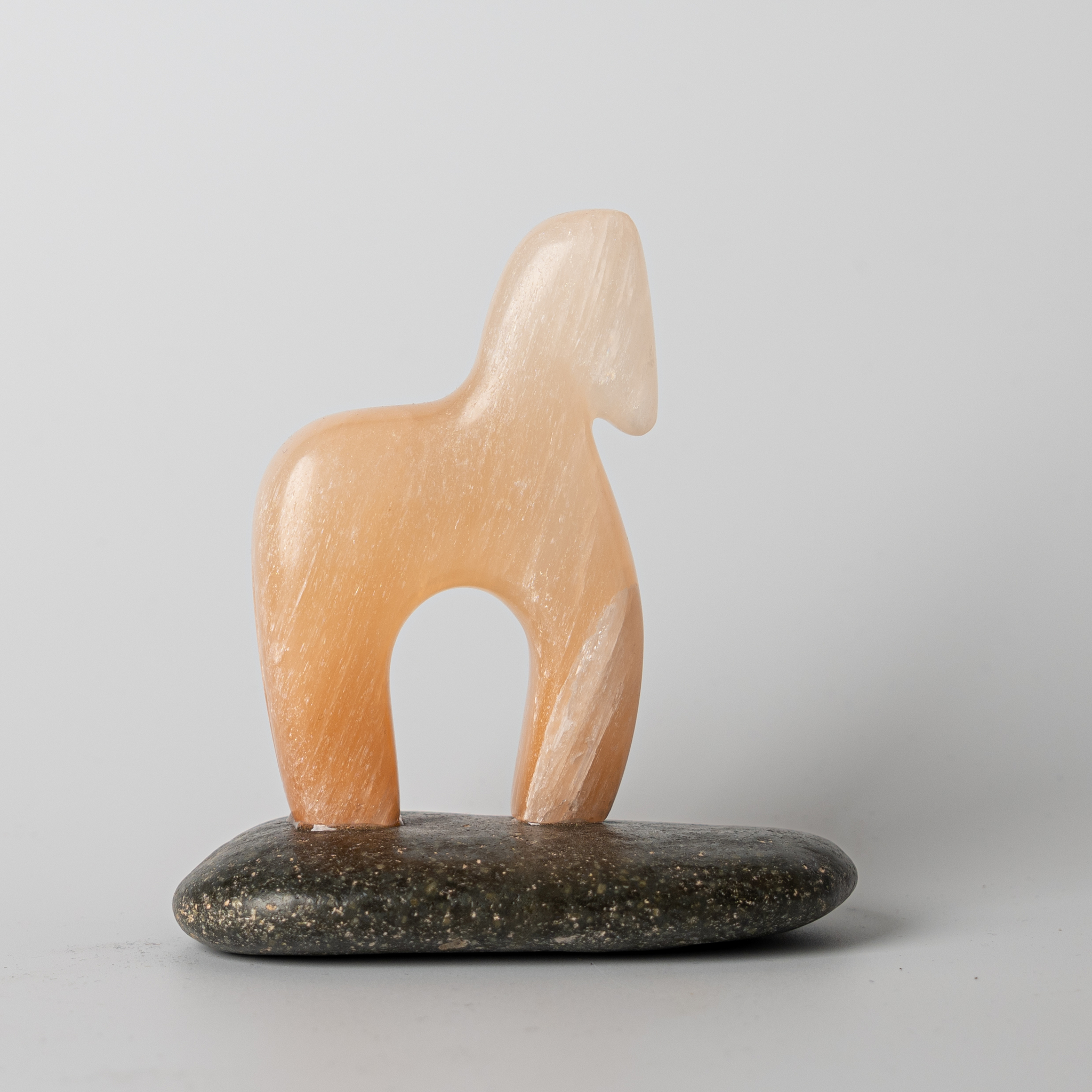 Aiyanar paardje gemaakt van oranje albast, op een natuursteen.