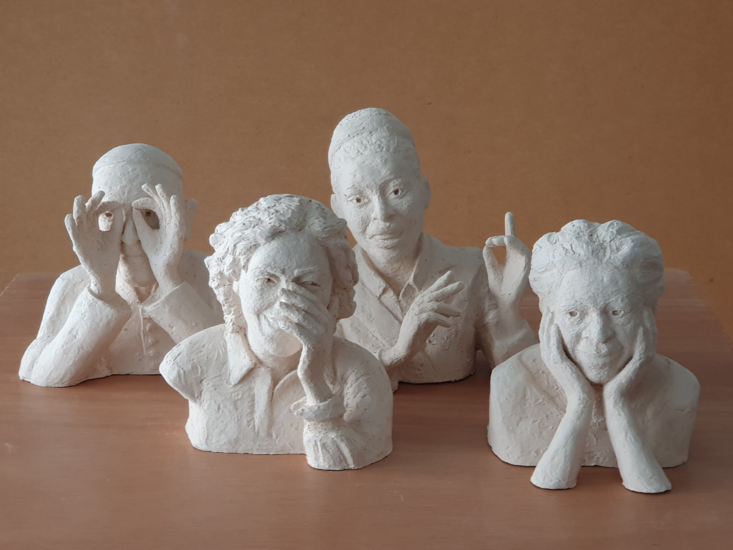 Een serie portretjes uit 2025 van inspirerende mensen waaronder Paus Franciscus, the funny pope, en Amanda Gorman, spoken word artist. Elke portretje is in fijne chamotte klei en ongeveer 12 cm hoog.