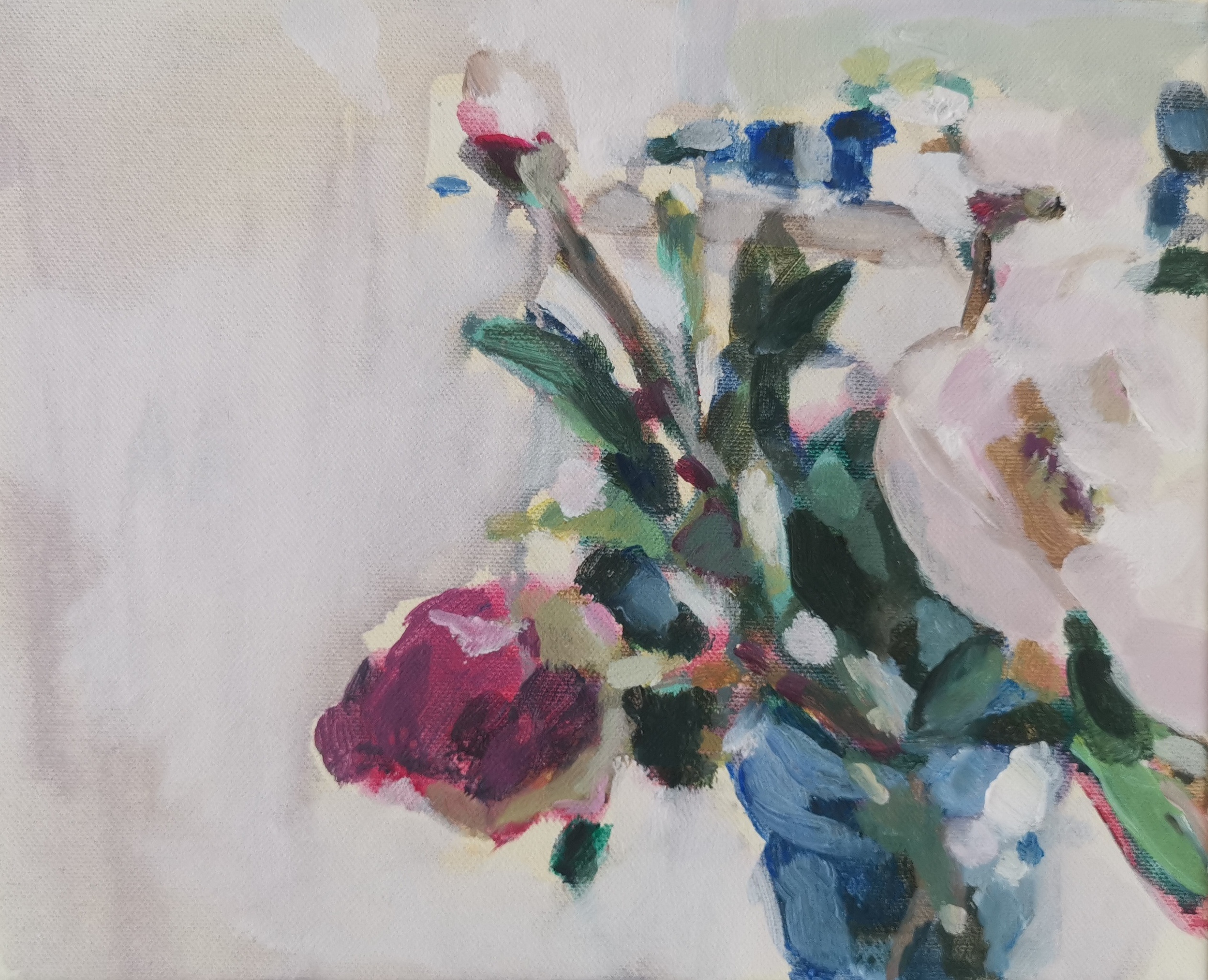 Van binnen naar buiten kijken staat centraal. Daarbij een focus op het verkennen van de diepte van kleur en de kunst van het expressief vastleggen van licht op doek.