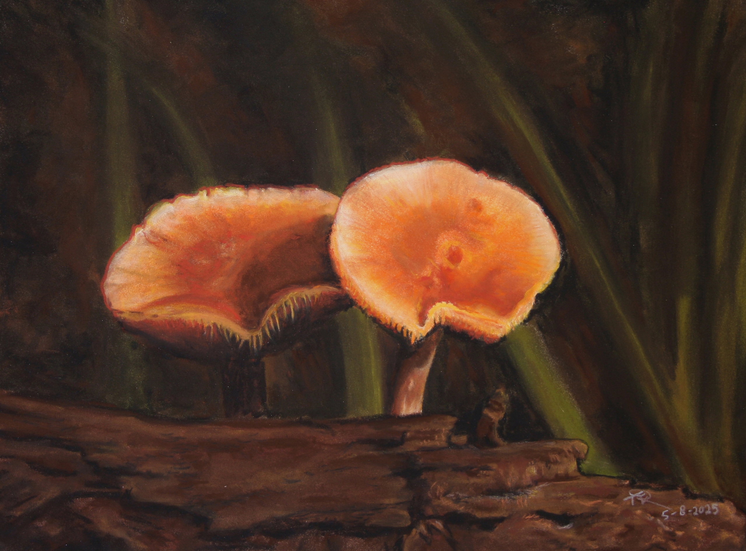 Oranje Tekening Realistisch Herfst Bos Boomstam Softpastel Paddenstoel
